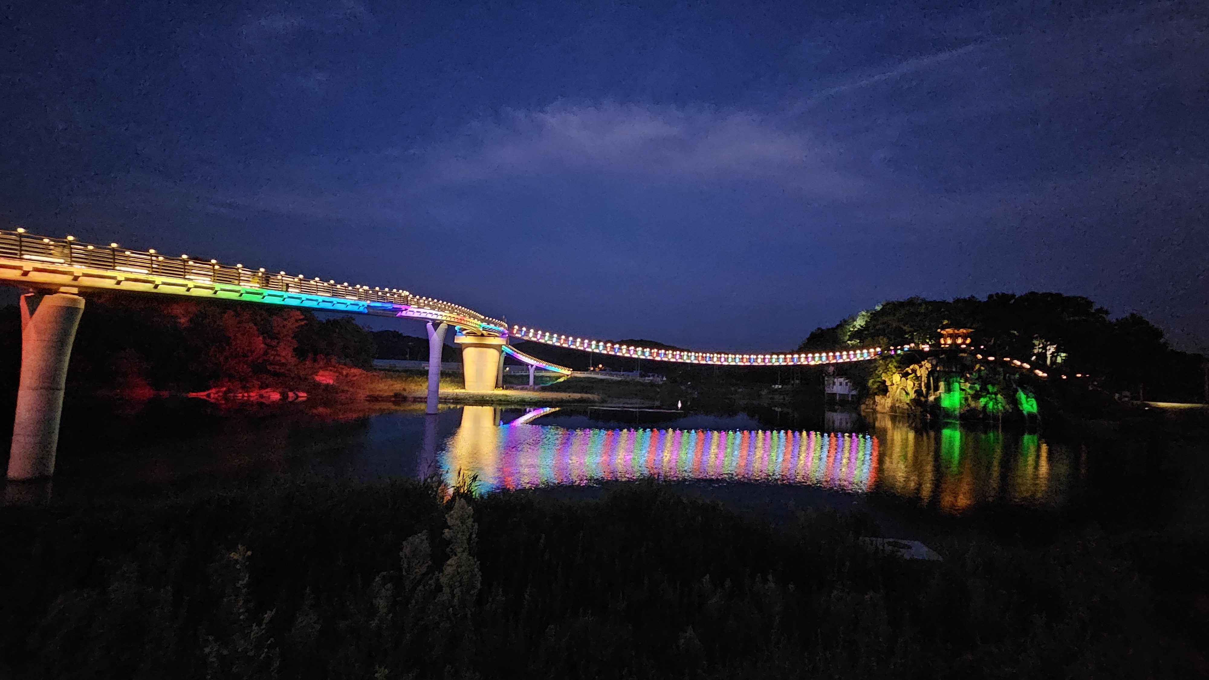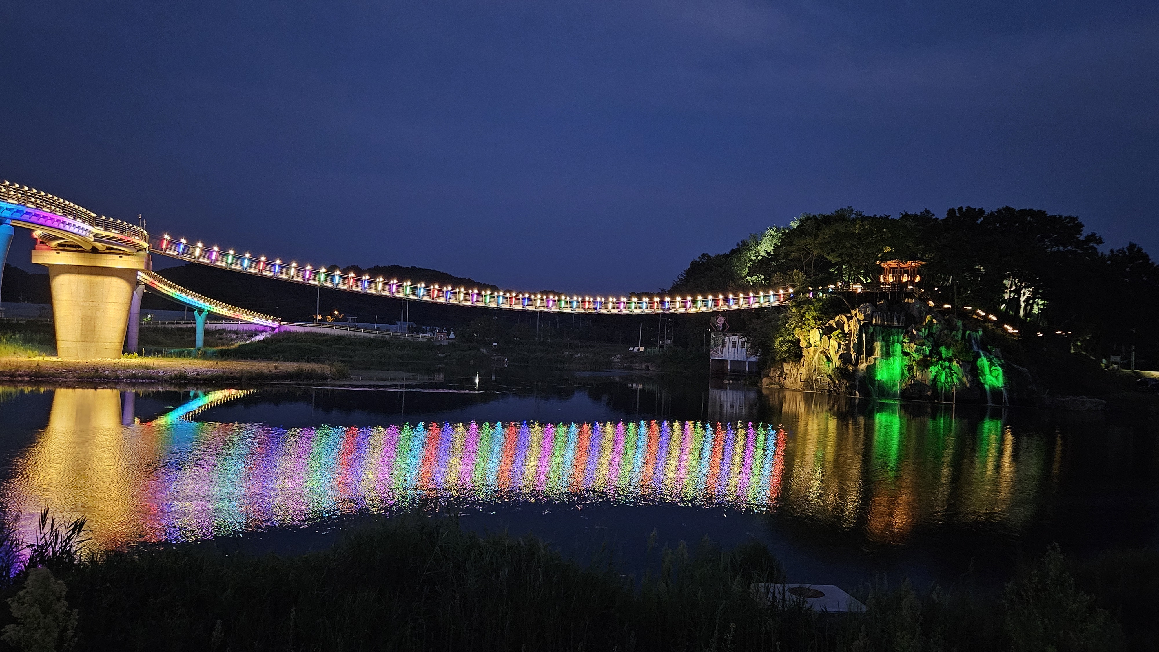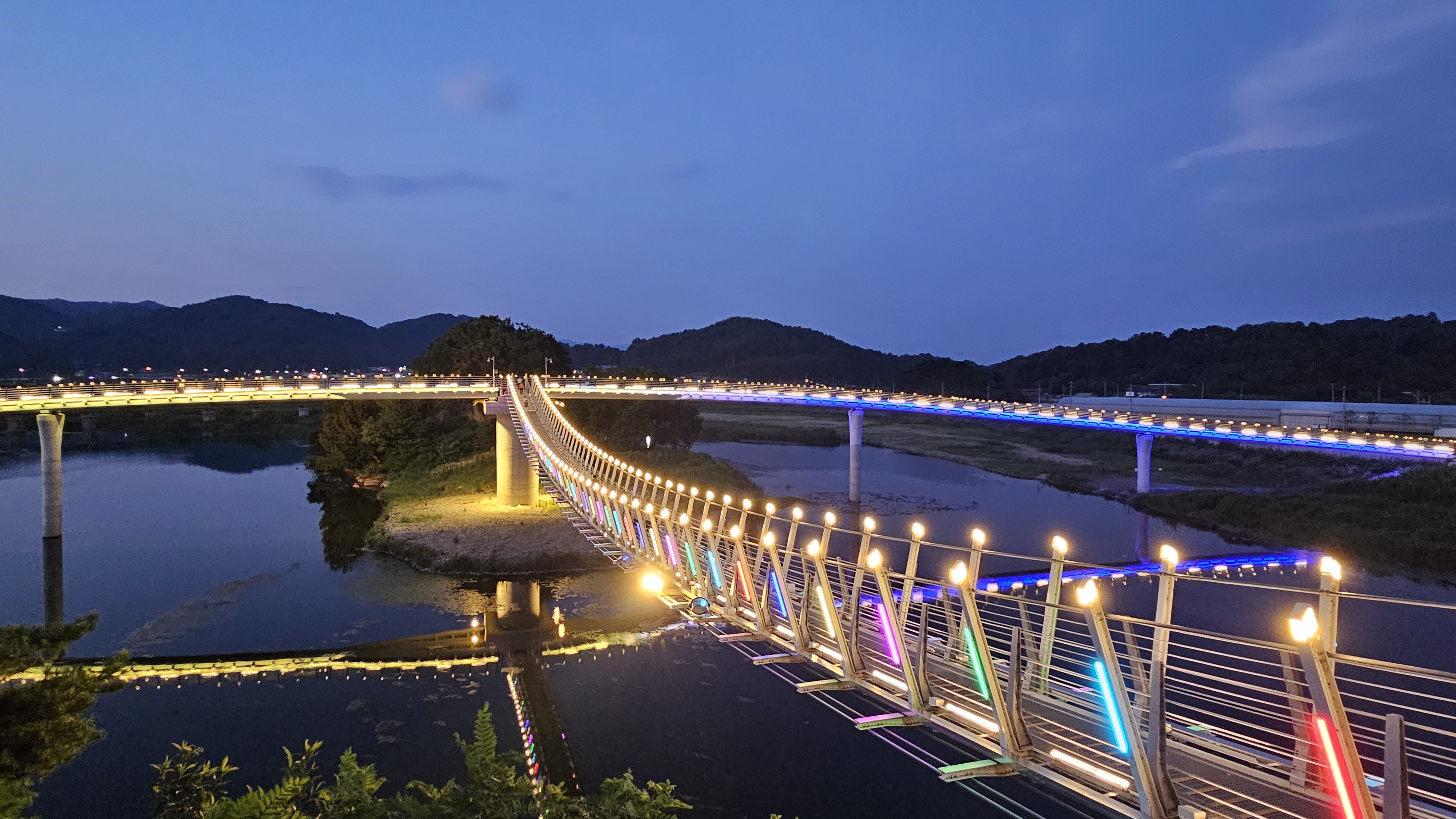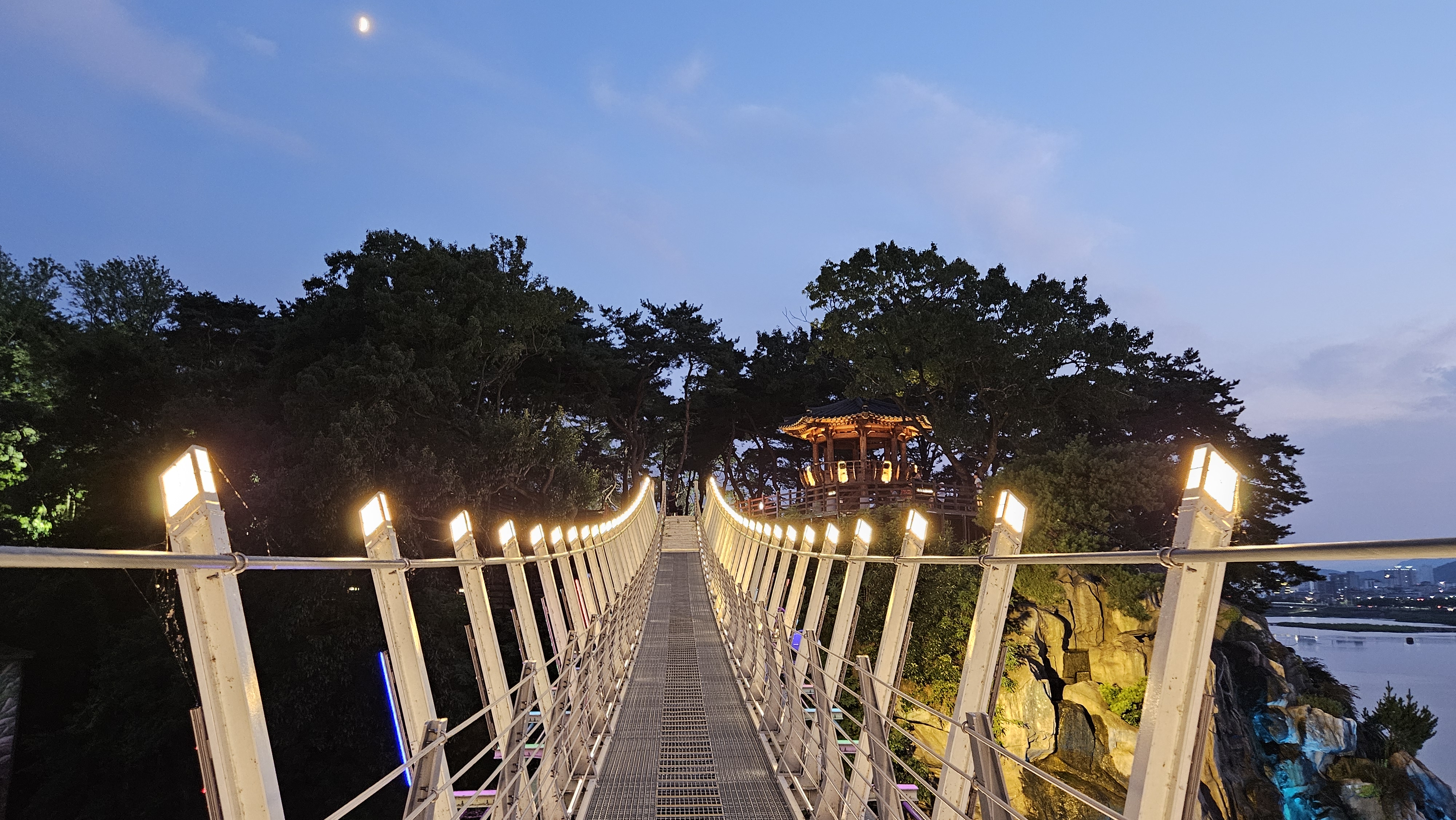 주변이 어두워지면서 점점 아름다워지는 영강 출렁다리