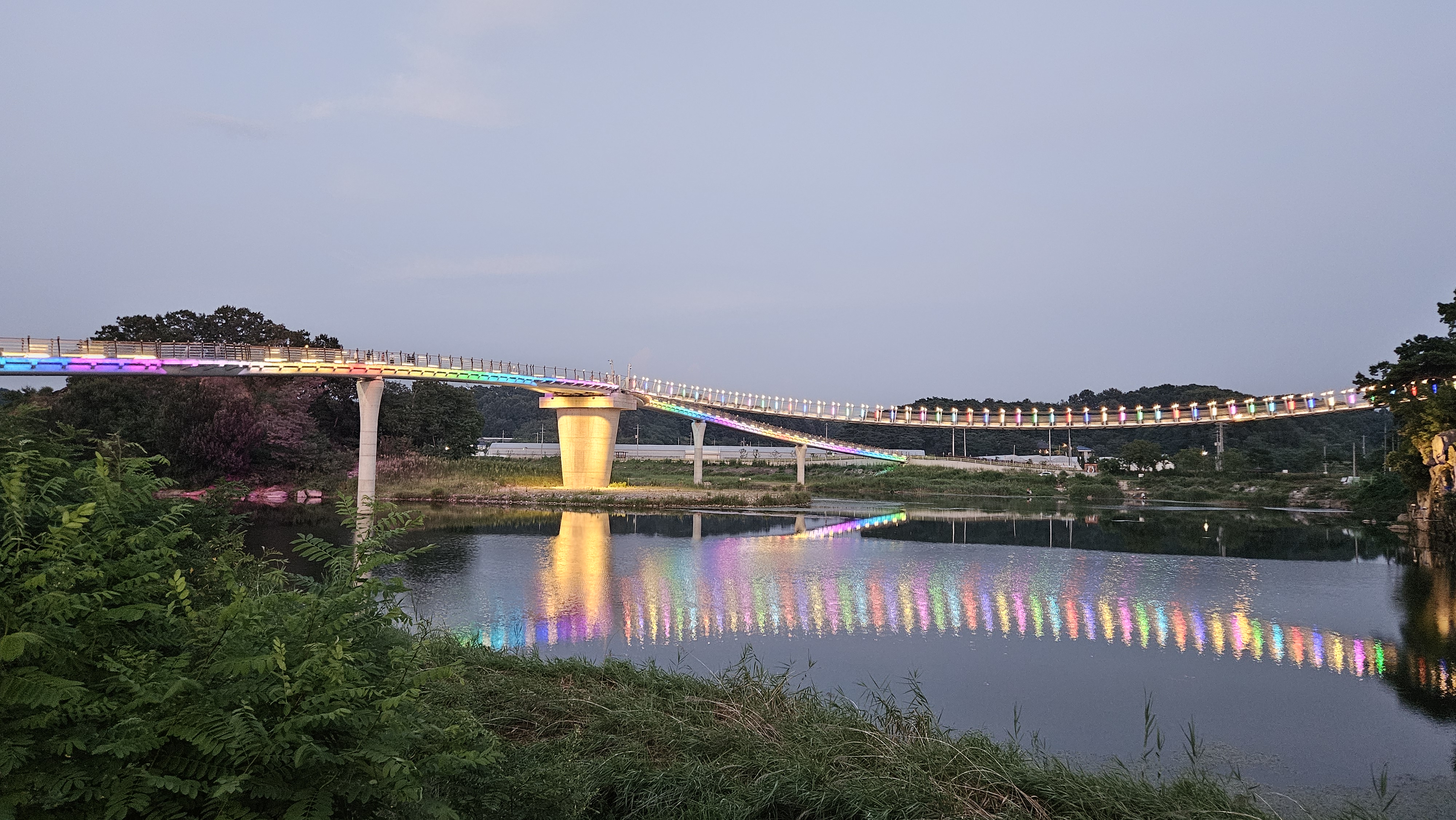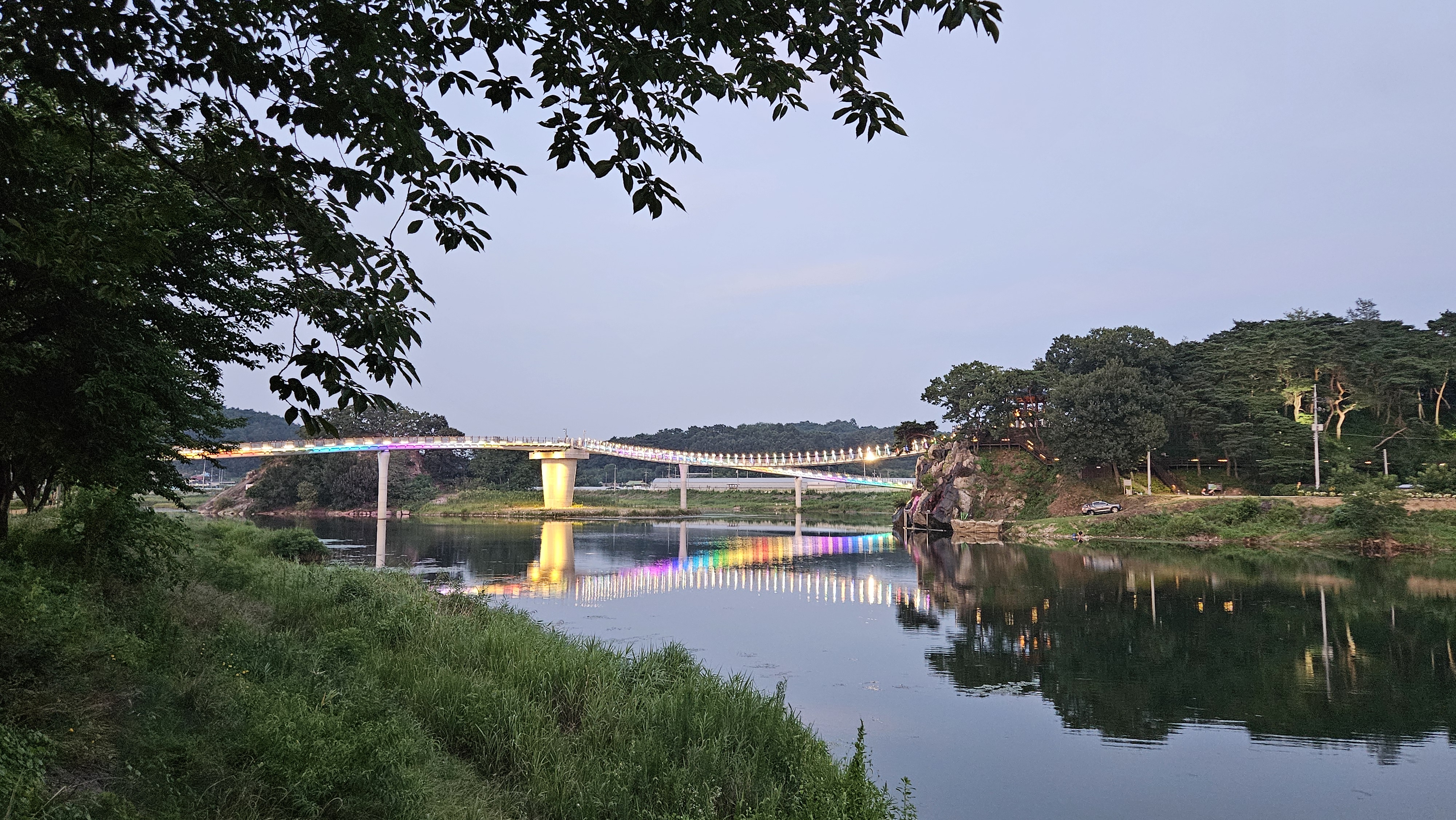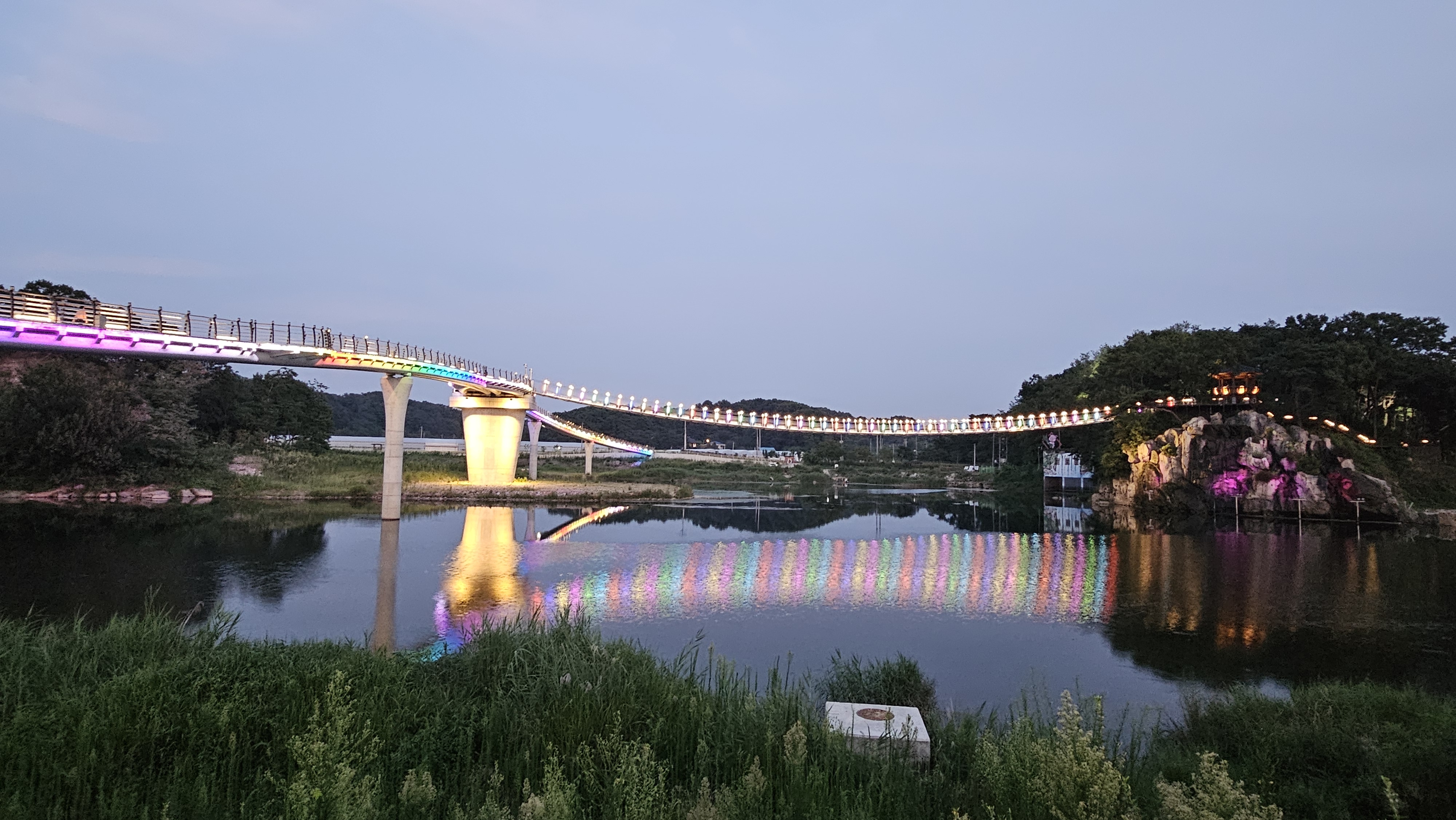 자연 속 문경 야경 명소, 영강체육공원 영강보행교 출렁다리에서 시원한 저녁시간을 보내면 좋은 곳이었습니다.