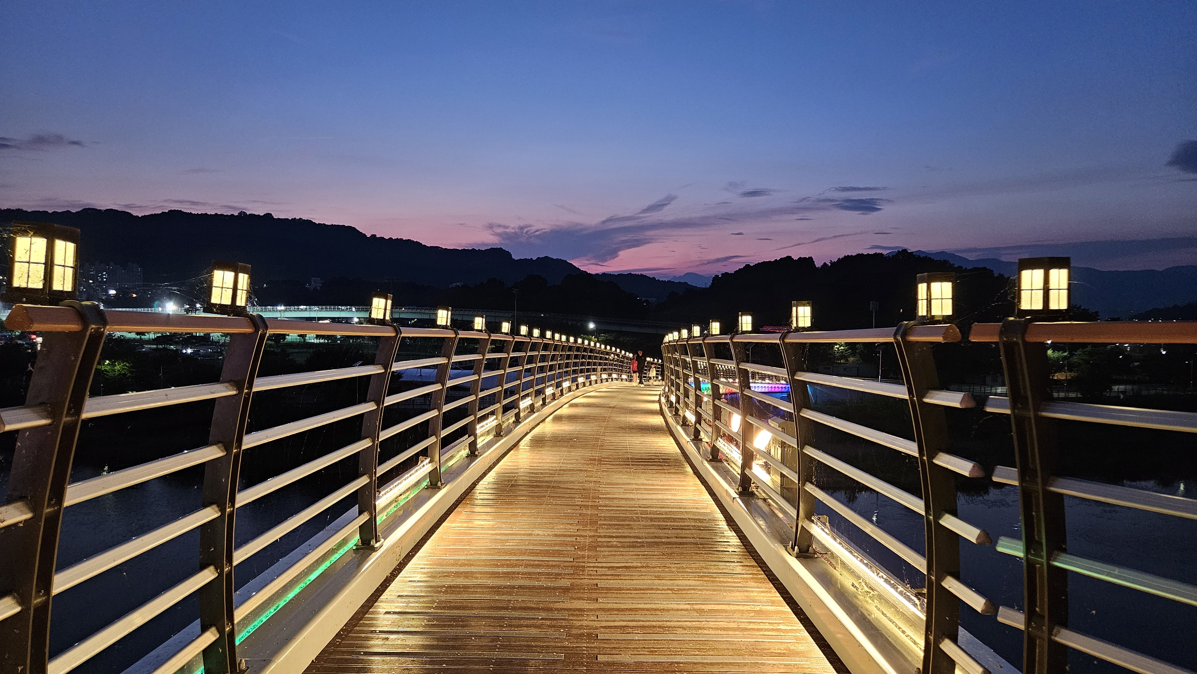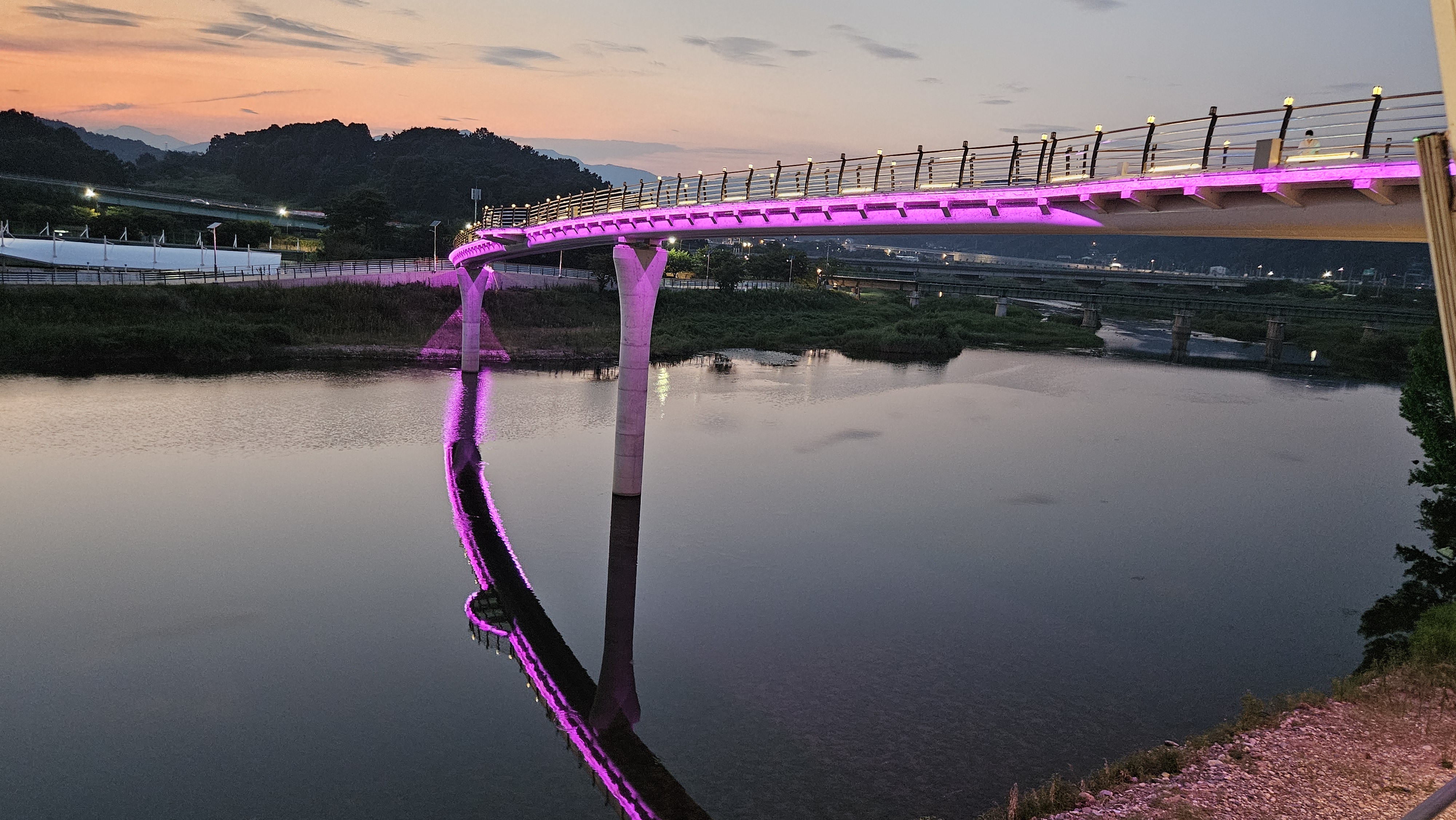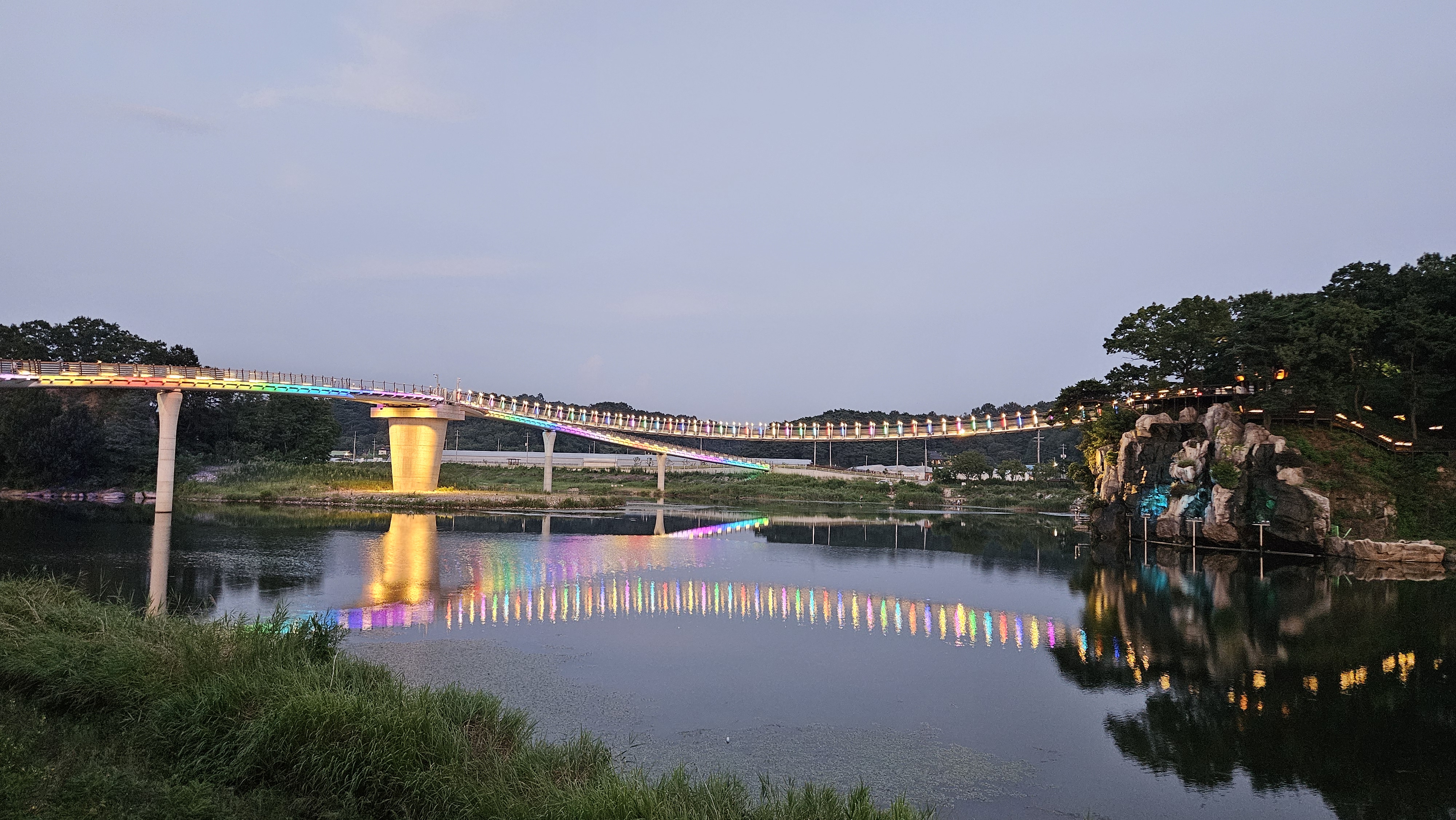 자연 속 문경 야경 명소, 영강체육공원 영강보행교 출렁다리에서 시원한 저녁시간을 보내면 좋은 곳이었습니다.