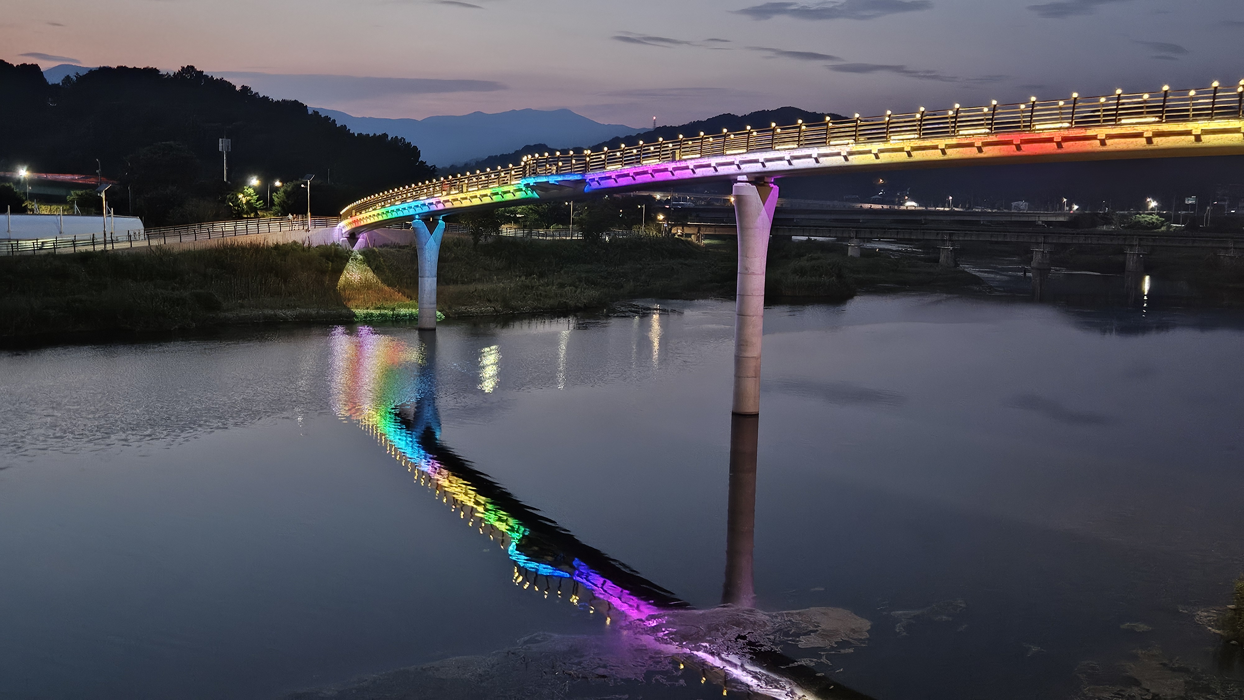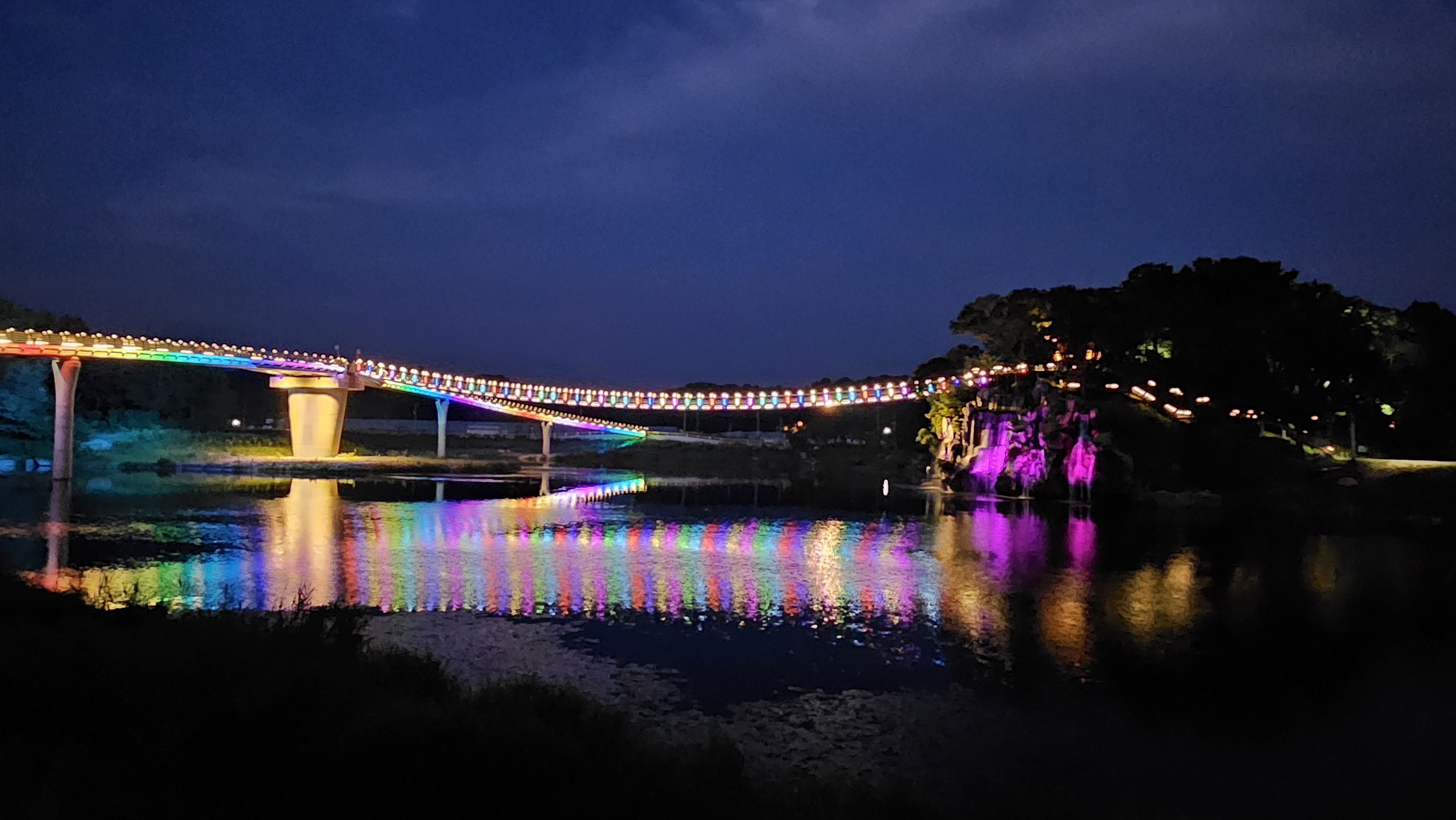 문경 야경명소라 할 수 있는 영강체육공원과 영강보행교 출렁다리 야경을 담았습니다.