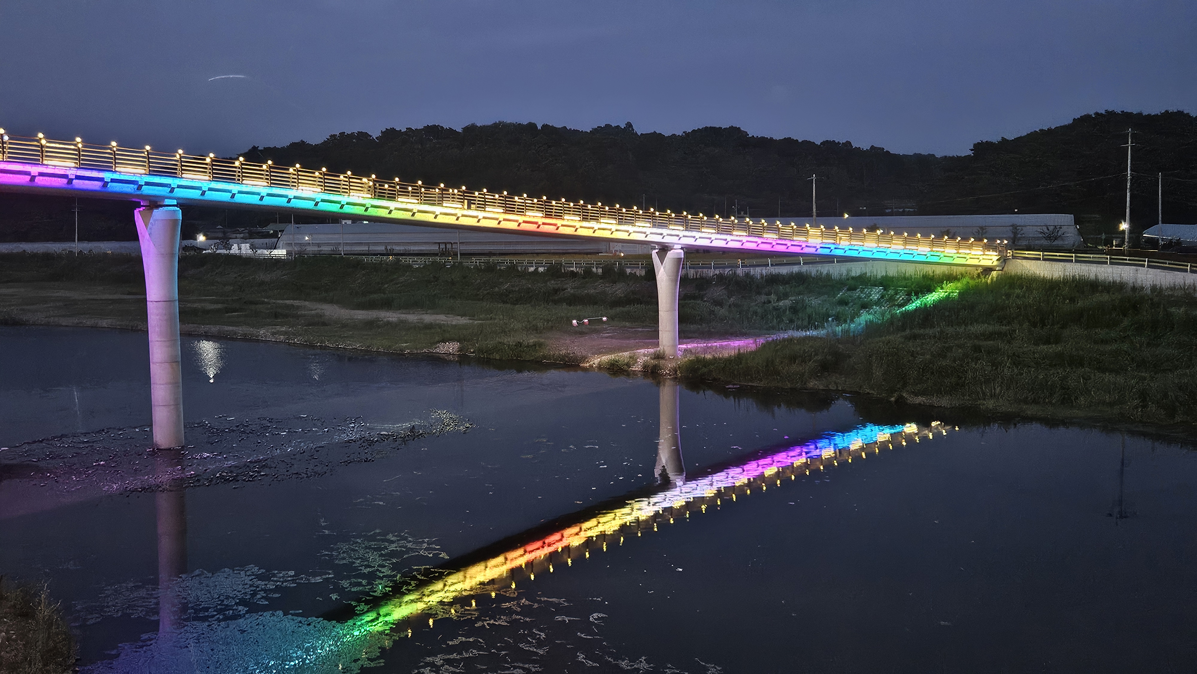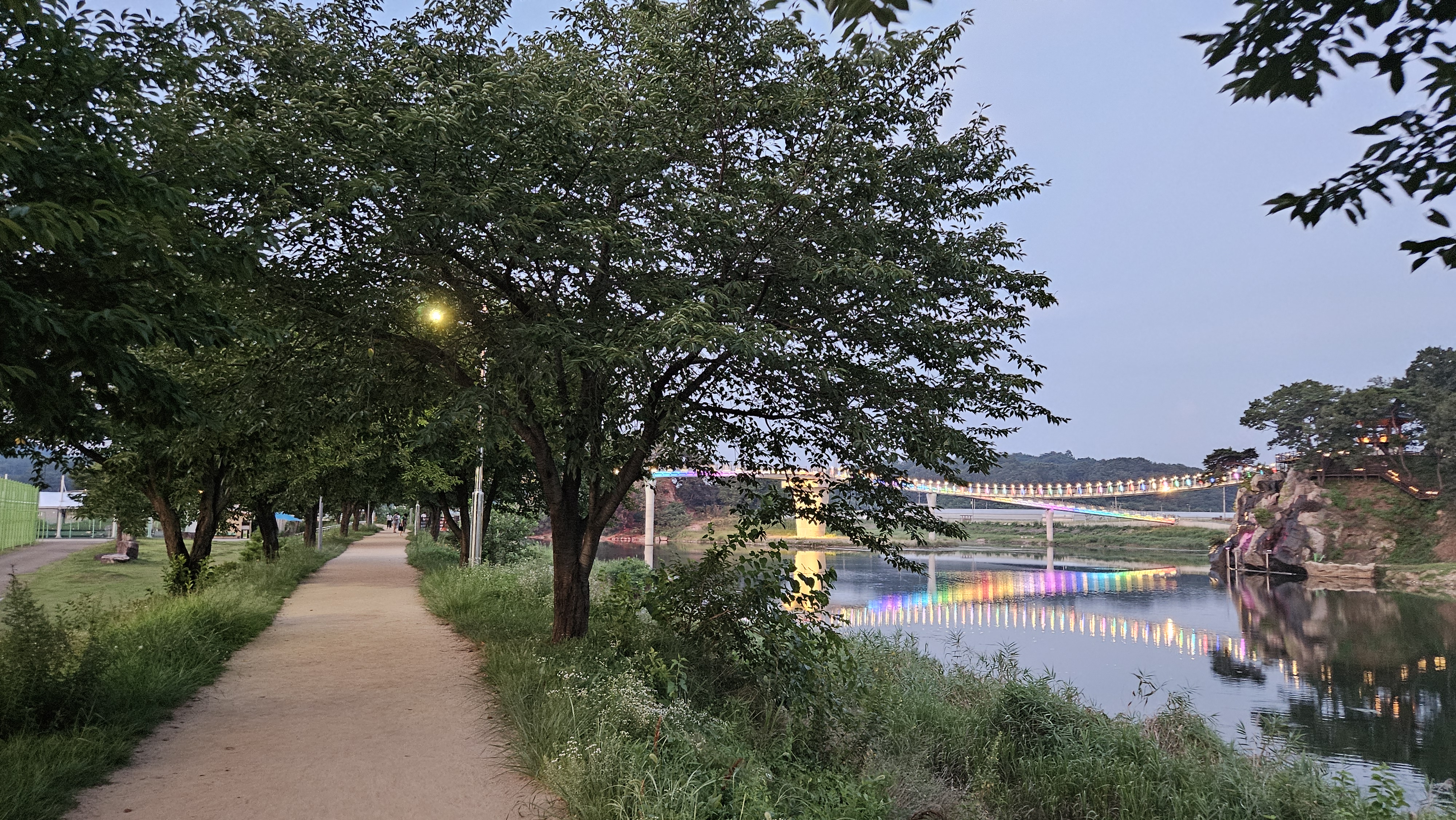 낮엔 영강의 수변경관을 조망할 수 있고, 저녁엔 경서로를 따라 지나가다 보면 영강보행로엔 야간 경관조명이 설치돼 있어 아름다운 야경까지 볼 수 있는 곳입니다.