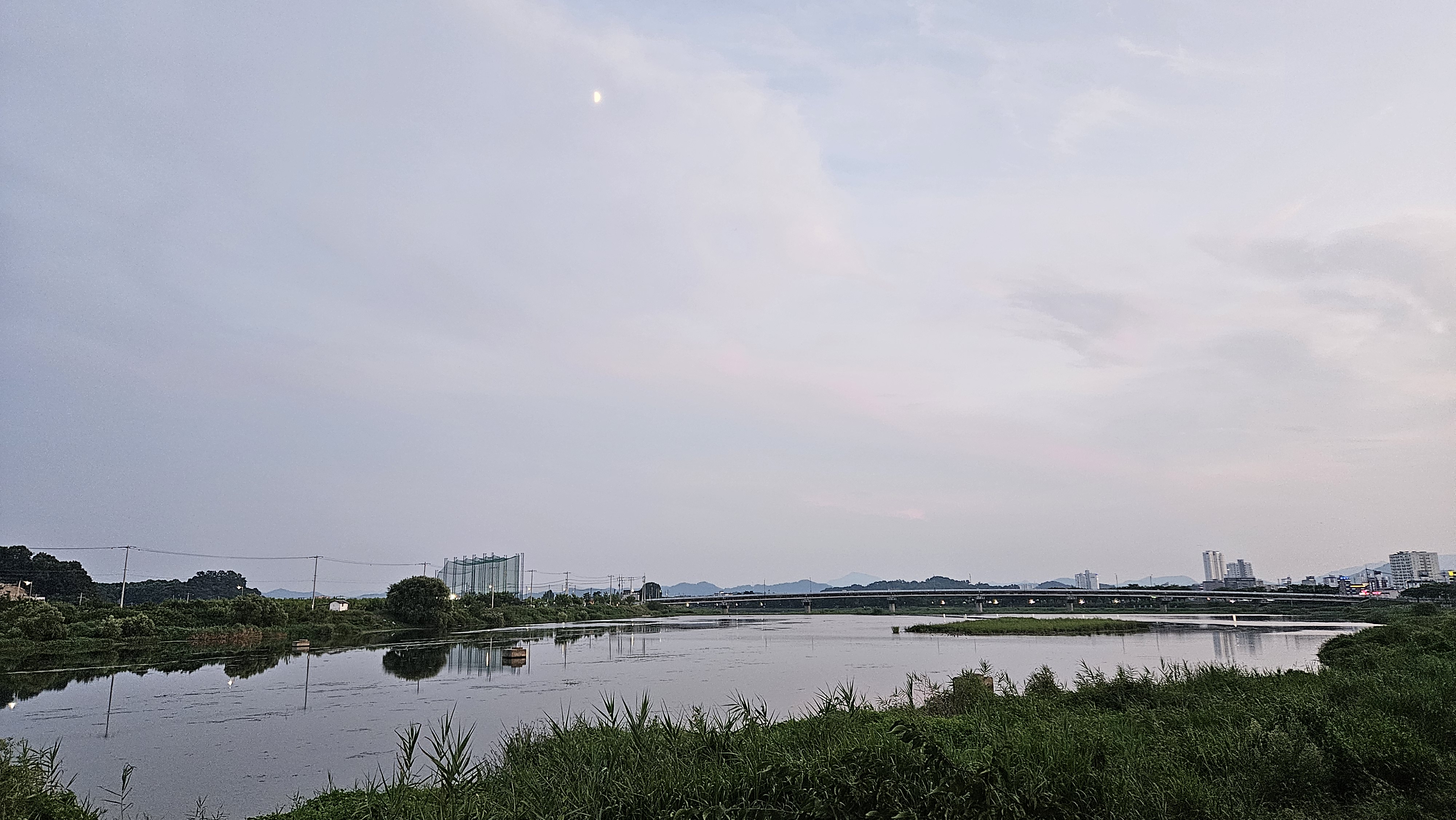 저녁 7시 20분이 넘어가는 시각이라 서쪽으로 해가 떨어지고 있습니다.
