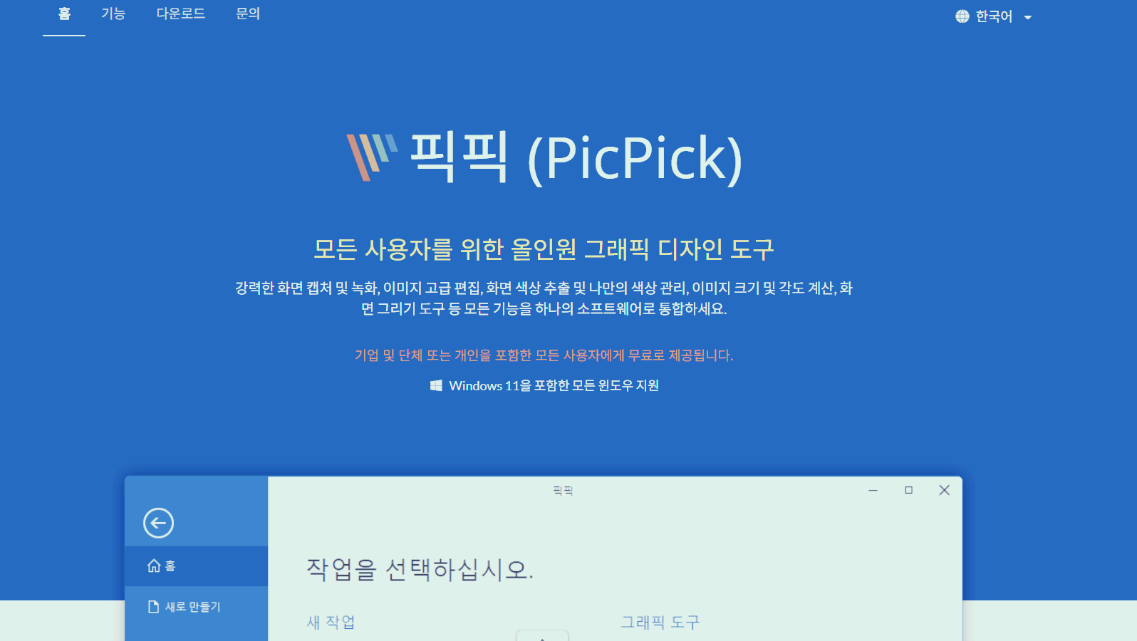 픽픽(PickPick)은 화면 캡처와 이미지 편집을 한 번에 할 수 있는 올인원 그래픽 도구로, 다양한 캡처 옵션과 직관적인 편집 기능을 제공하는 윈도우용 소프트웨어입니다.