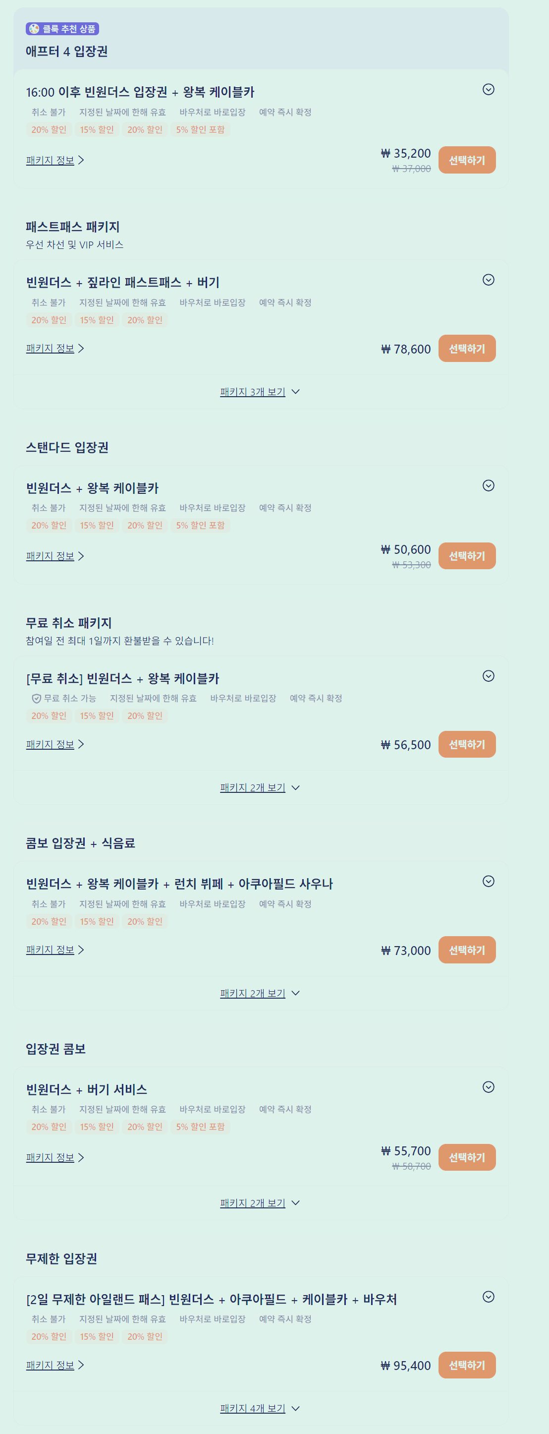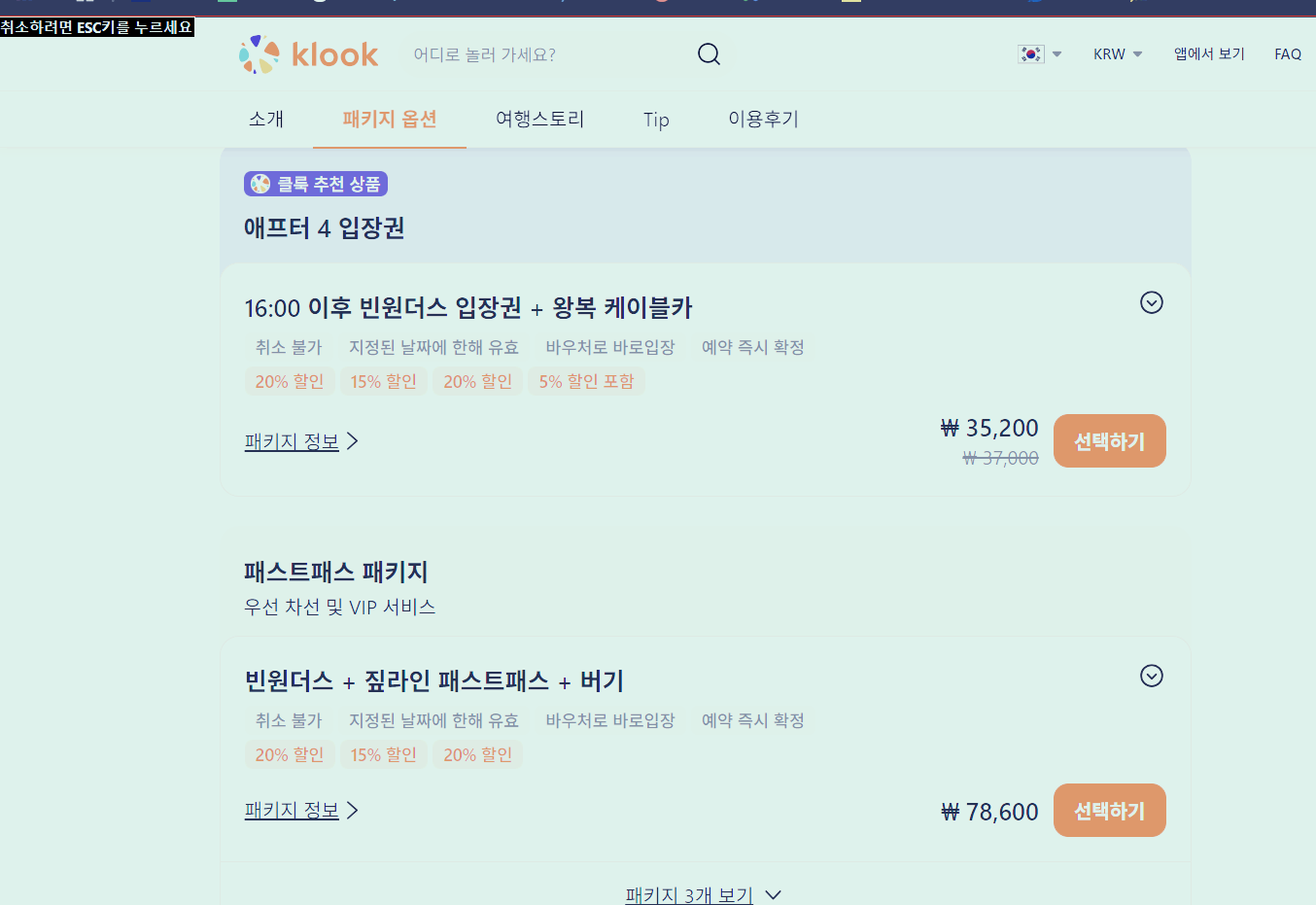 예시로 클룩의 입장권 가격표를 대상으로 했습니다.