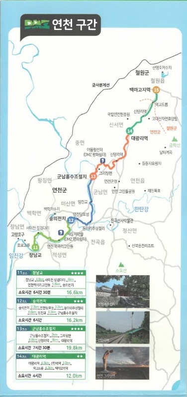 DMZ 평화의 길 16-1코스(우회로) : 길이 14.8km, 소요시간 5시간, 난이도 쉬움