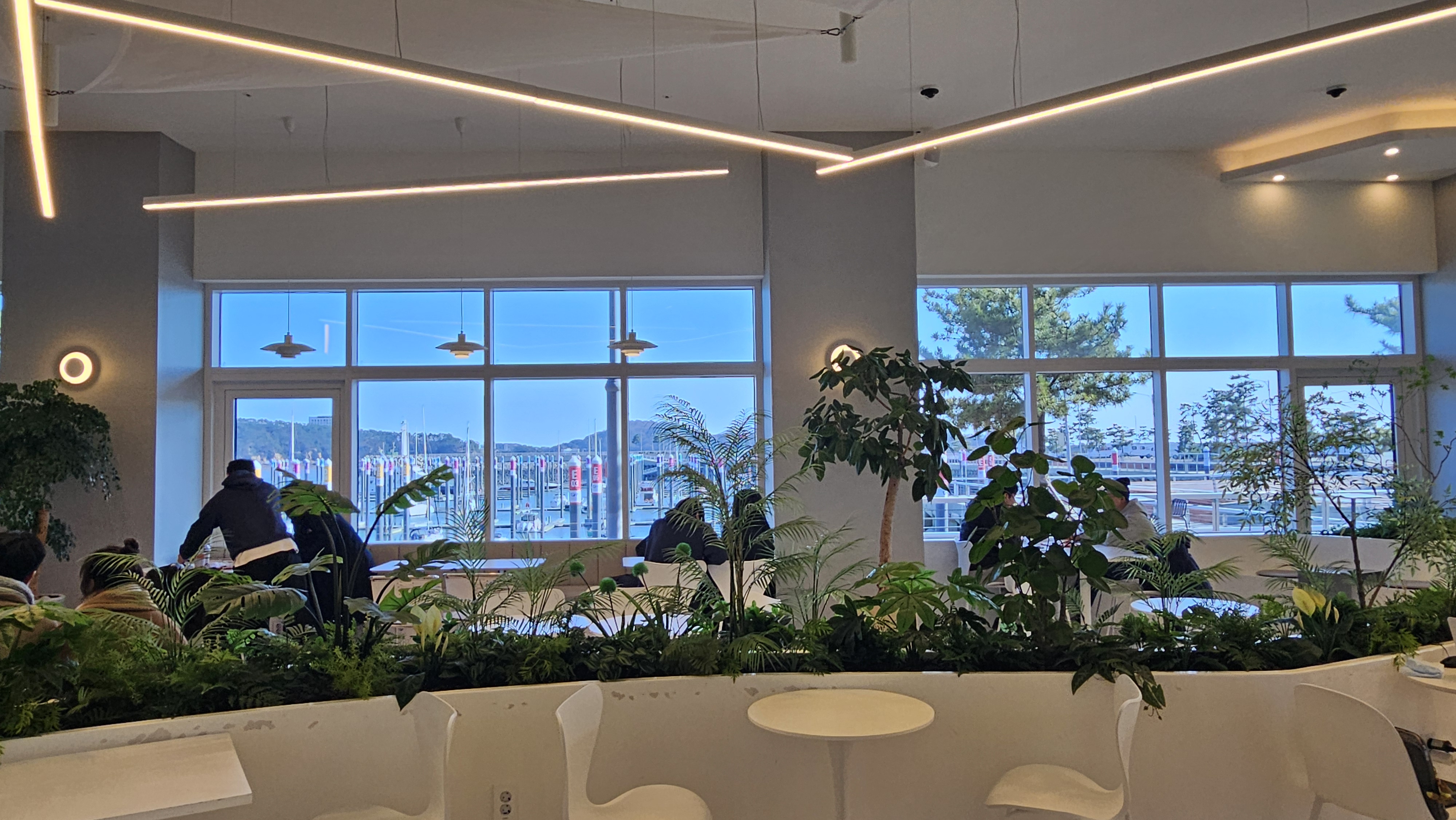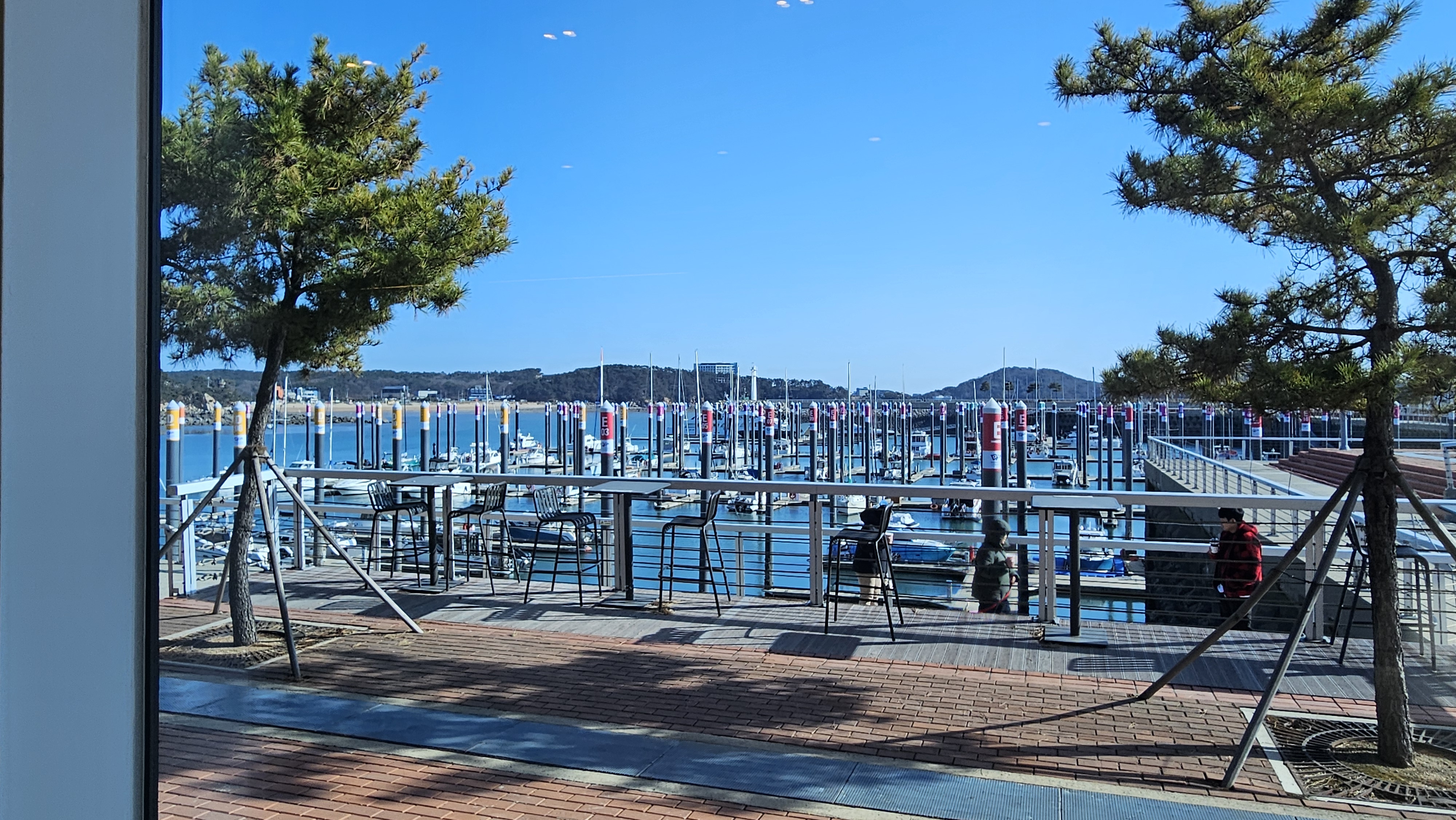 창밖에는 야외 테라스도 마련되어 있어서 춥지 않을 땐 오롯이 요트장과 바다를 바라보면서 차를 즐길 수 있습니다.