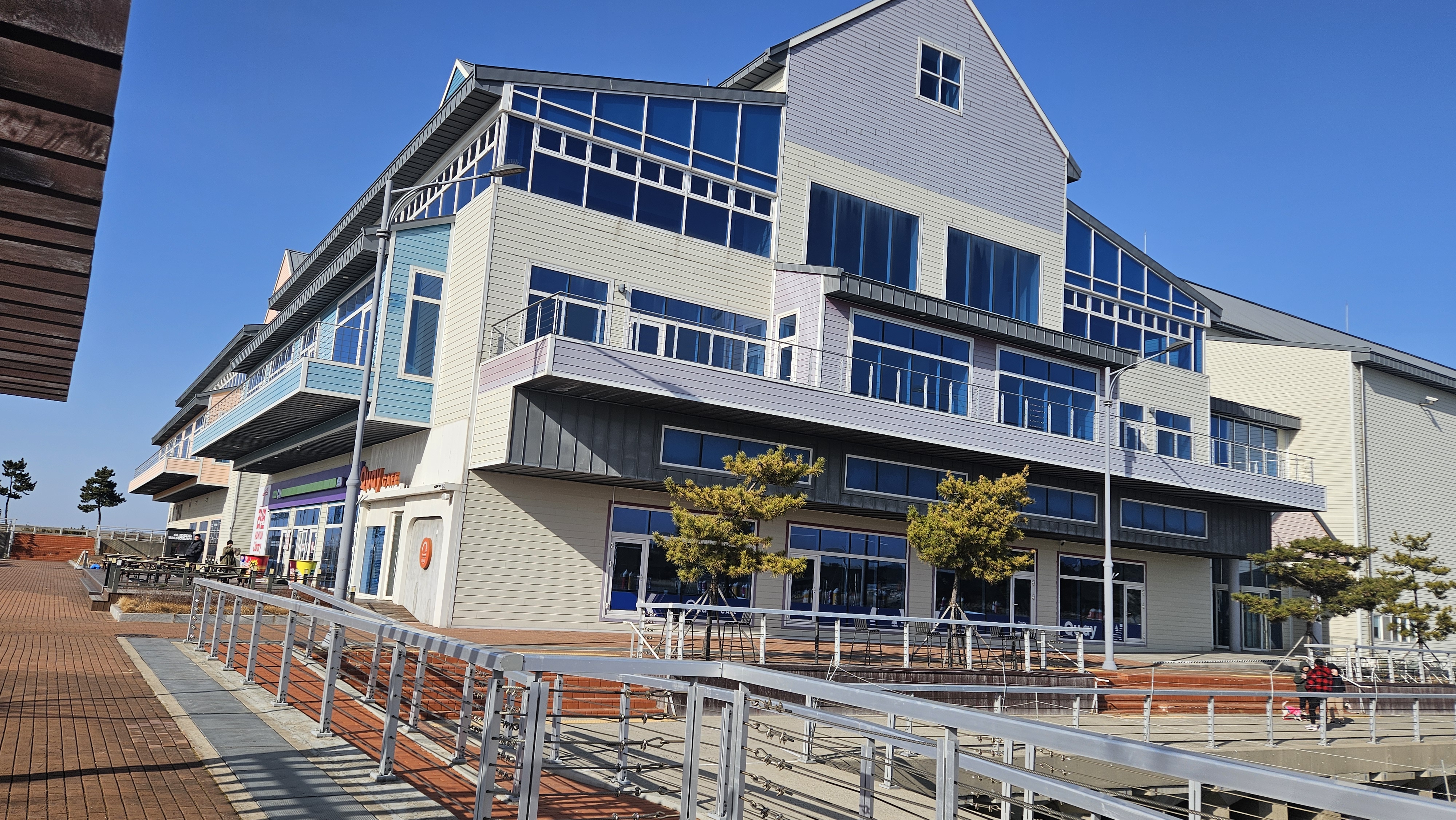 우측 1층에 CU 왕산마리나점이 있고, 그 옆에 키 카페(Quay Cafe)가 있습니다.