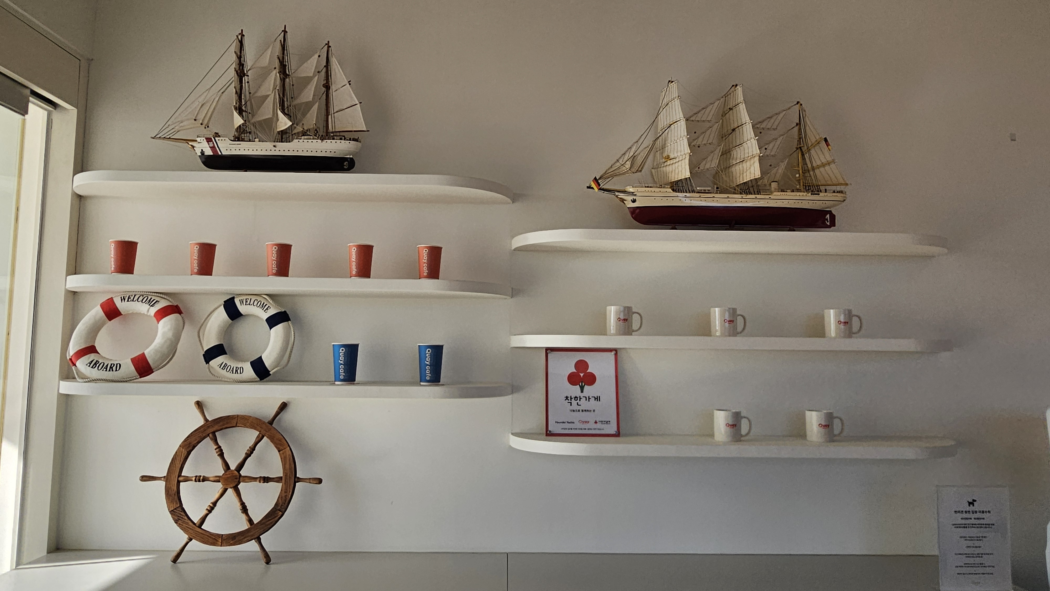 키 카페(Quay Cafe)의 인테리어 컨셉, 왕산마리나항의 특색을 반영한 메뉴인 듯합니다.