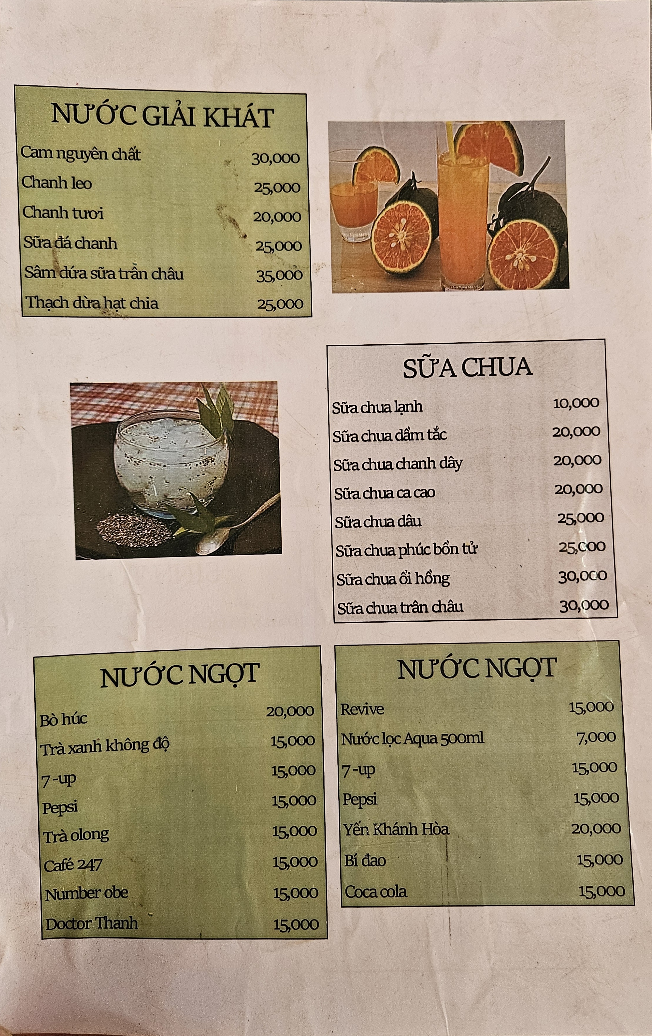 주스 종류로 오렌지, 라임, 레몬, 파인애플, 코코넛젤리 등이 2만동~3만동(1100~1700원)