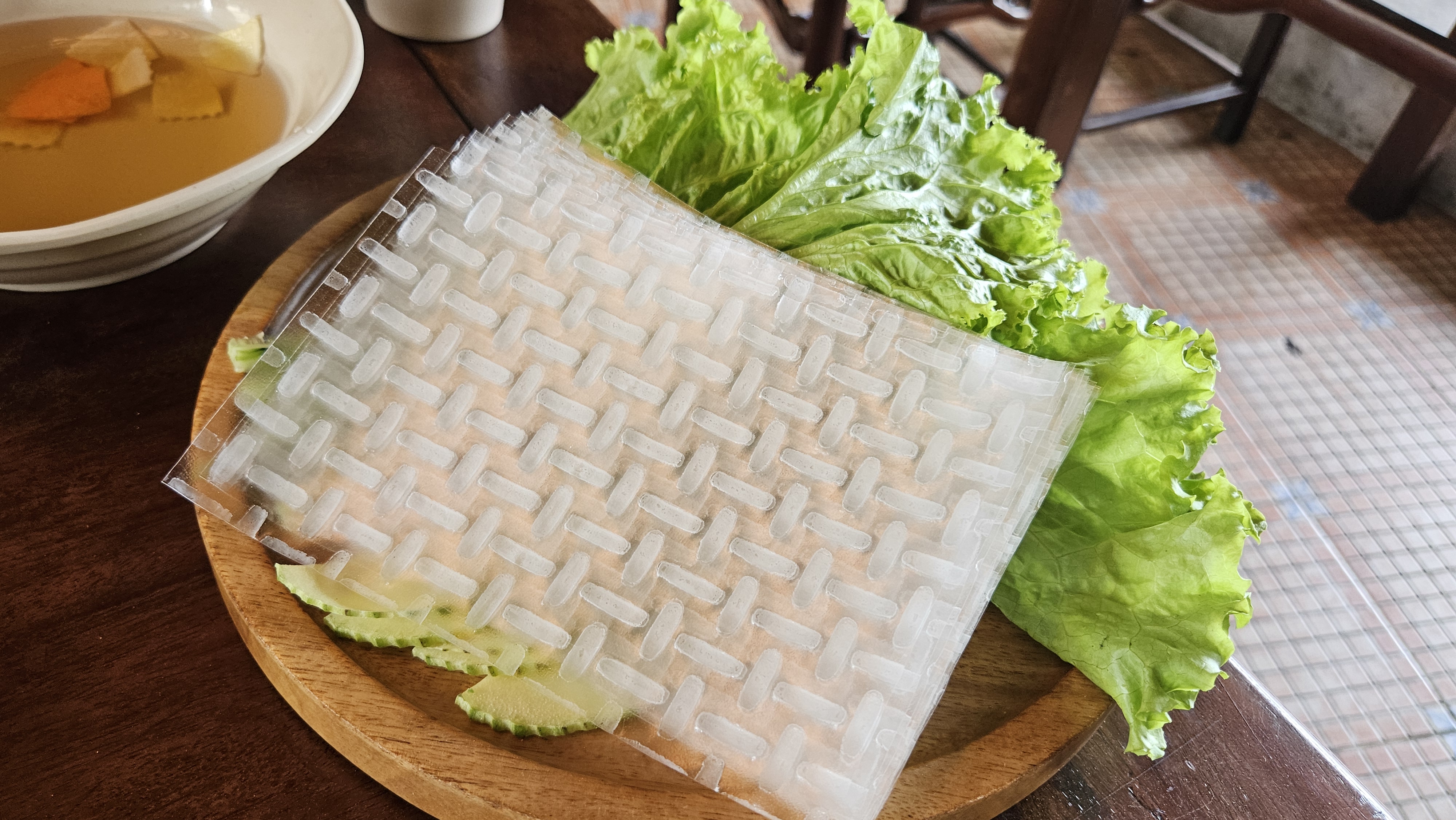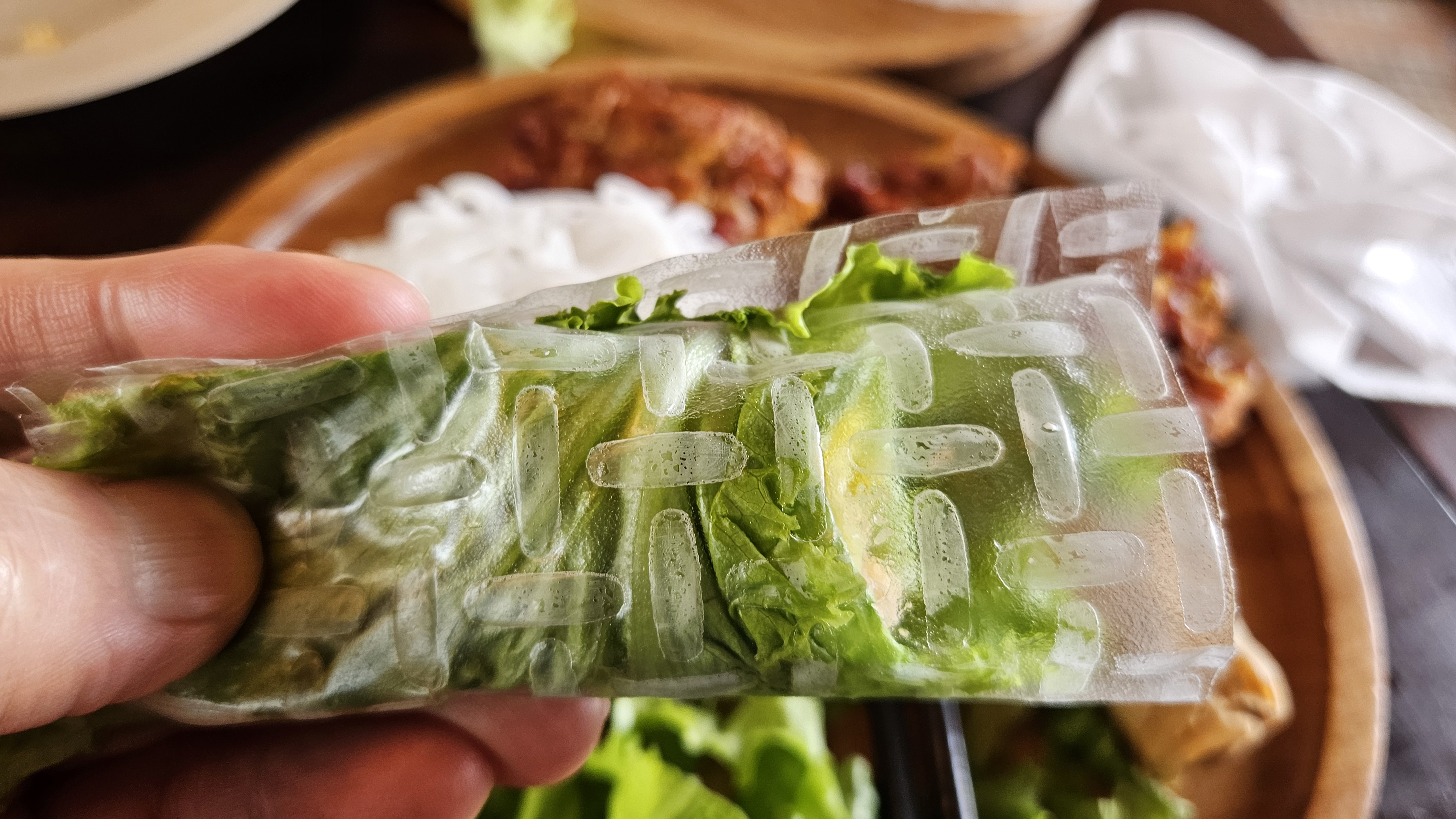 쌀가루와 코코넛 혹은 강황이 들어간 반죽으로 만든 라이스페이퍼에 돼지고기, 새우, 숙주 등을 감싸서 베트남식 달콤 짭짤한 소스에 찍어먹는 음식입니다.