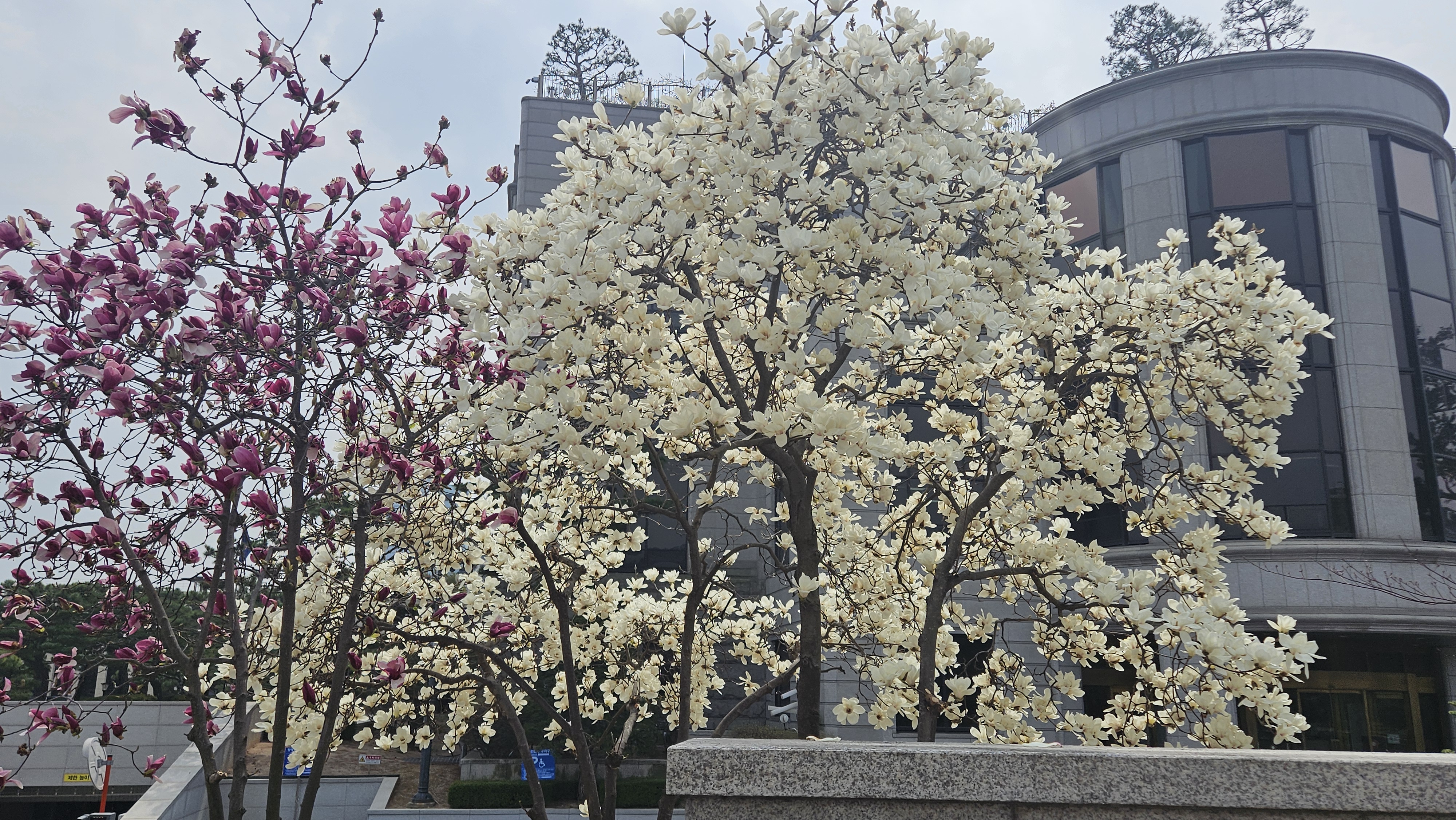 헌법재판소 옆 담벼락에 핀 목련꽃과 벚꽃