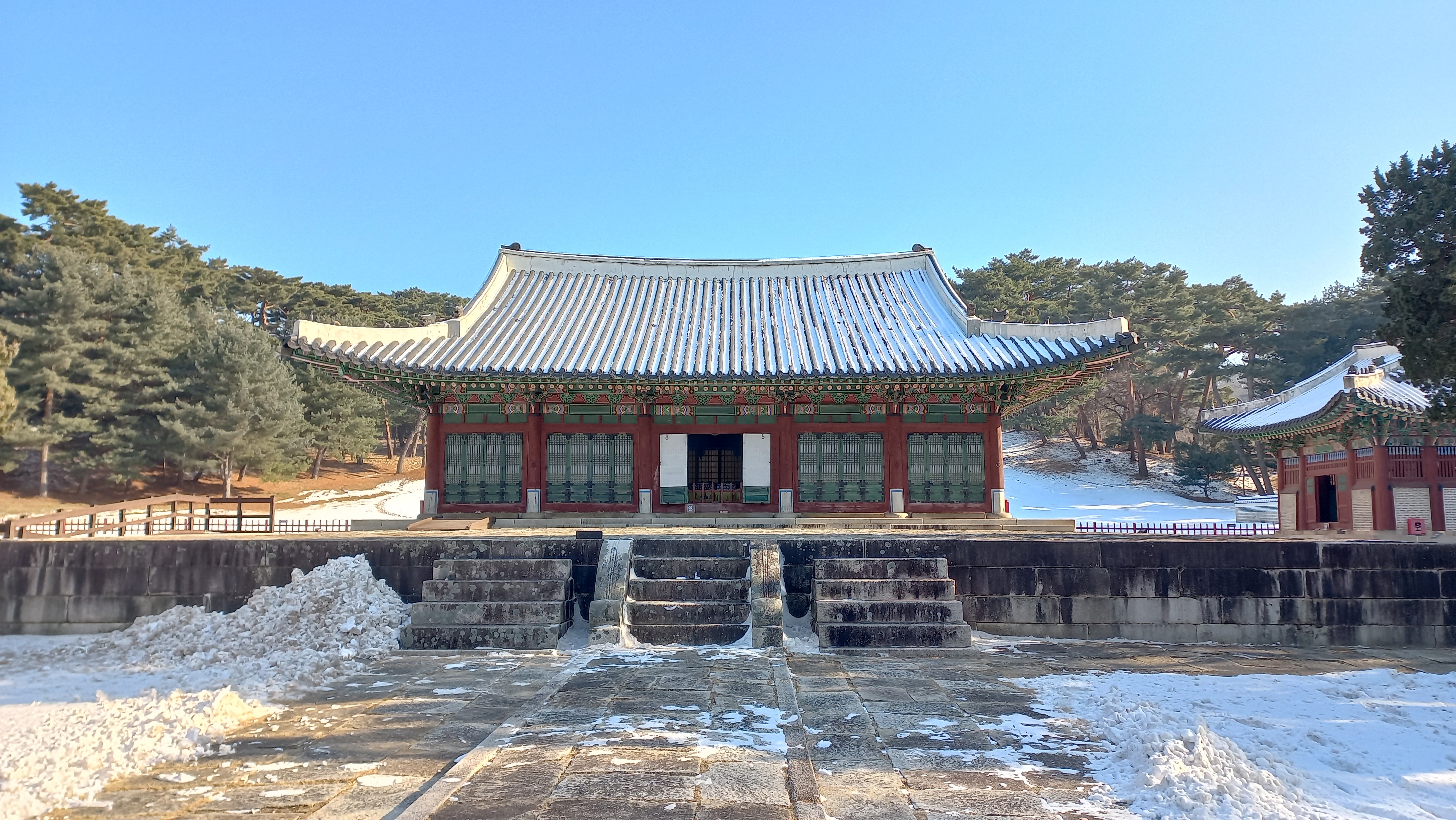 기존의 丁자각 대신 정면 5칸 측면 4칸의 ‘一’자형 침전을 세웠으며, 그 앞에 신도 양쪽으로 거대한 문·무인석을 비롯해 기린, 코끼리, 사자, 해태, 낙타, 말 순서로 동물의 석상을 배치하였습니다.