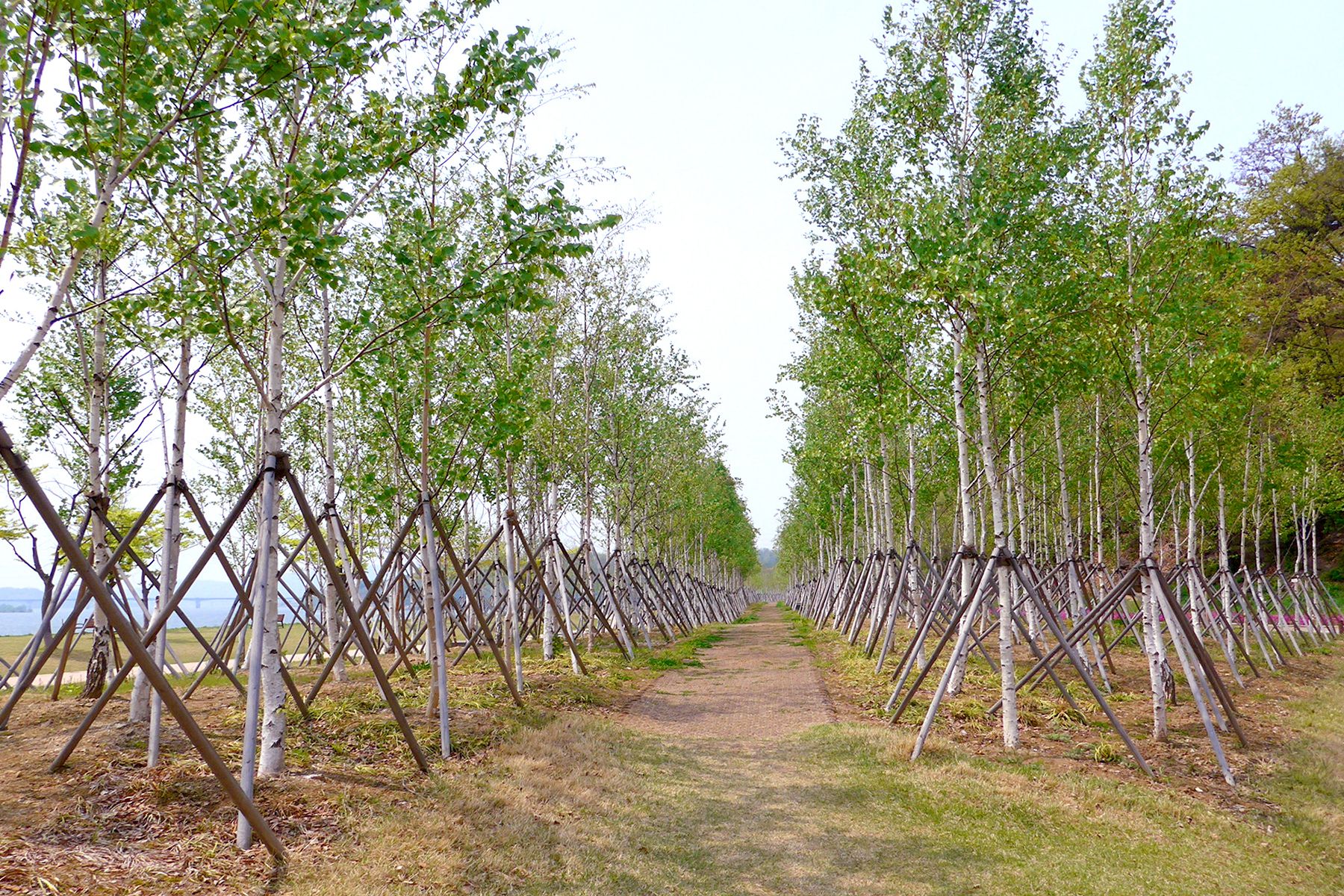 공원에는 야구장, 인라인장, 풋살구장 등 체육시설이 있고, SNS에 자주 올라오는 대표적 풍경 사진이자 남양주 한강공원의 자랑인 자작나무숲이 있습니다.