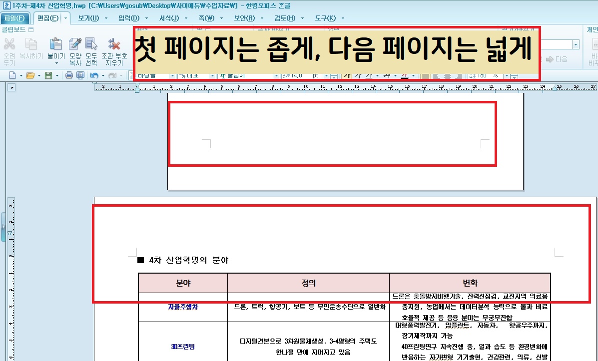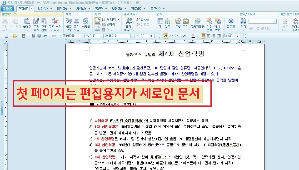 위 화면처럼 첫 페이지는 세로로 만들어진 문서입니다.