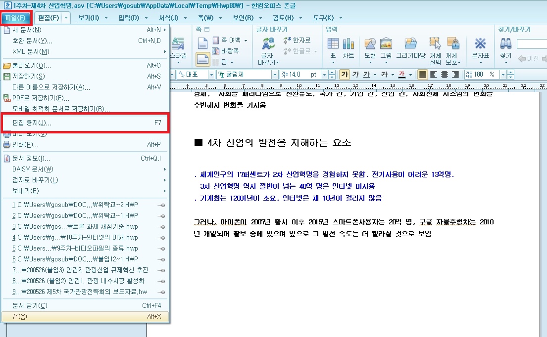 우리나라에서 문서작업을 할때 가장 많이 사용하는 편집 프로그램은 아래아 한글이죠?