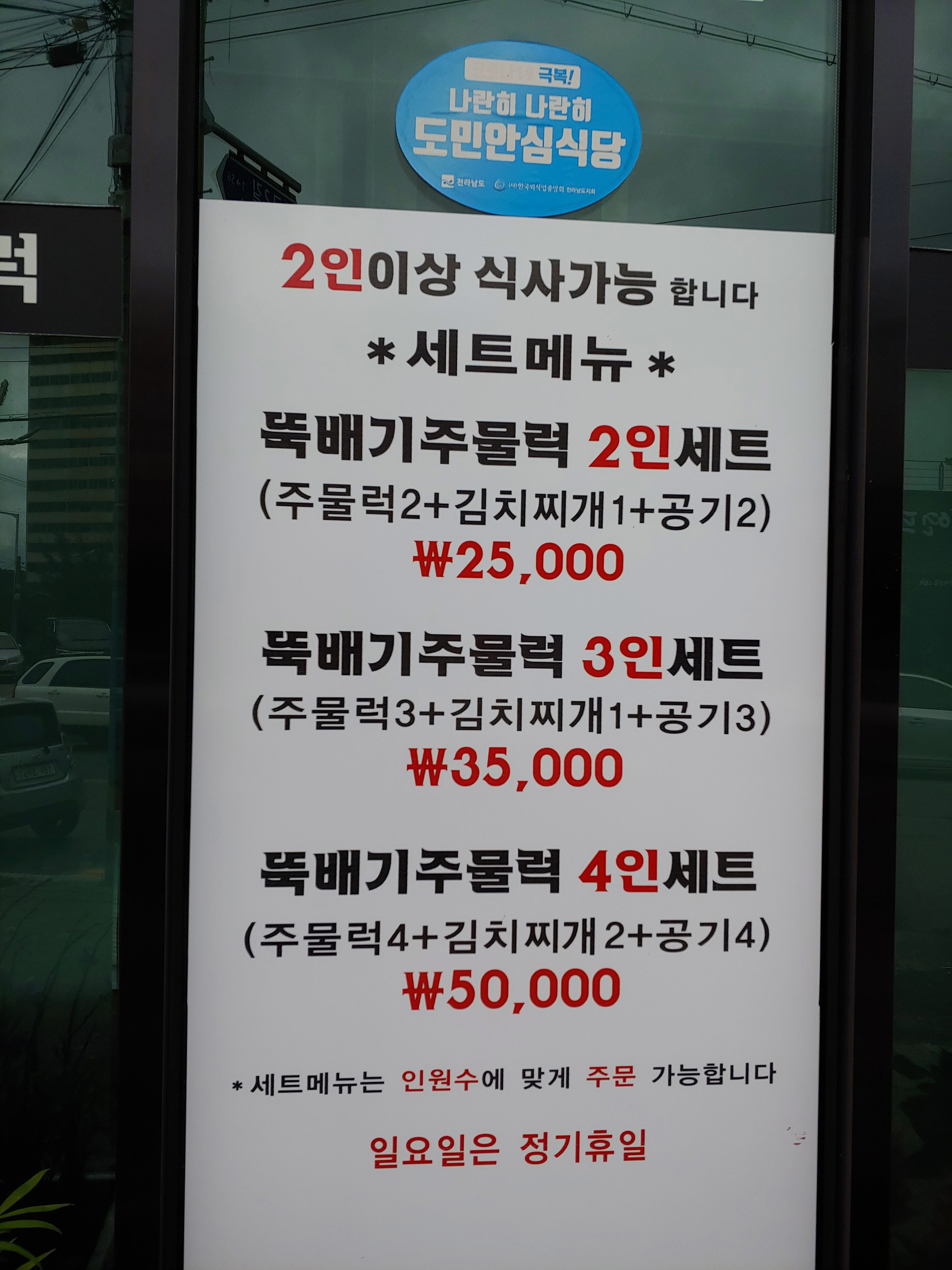 소망식당은 세트메뉴로 판매하기 때문에 1인 식사는 불가능