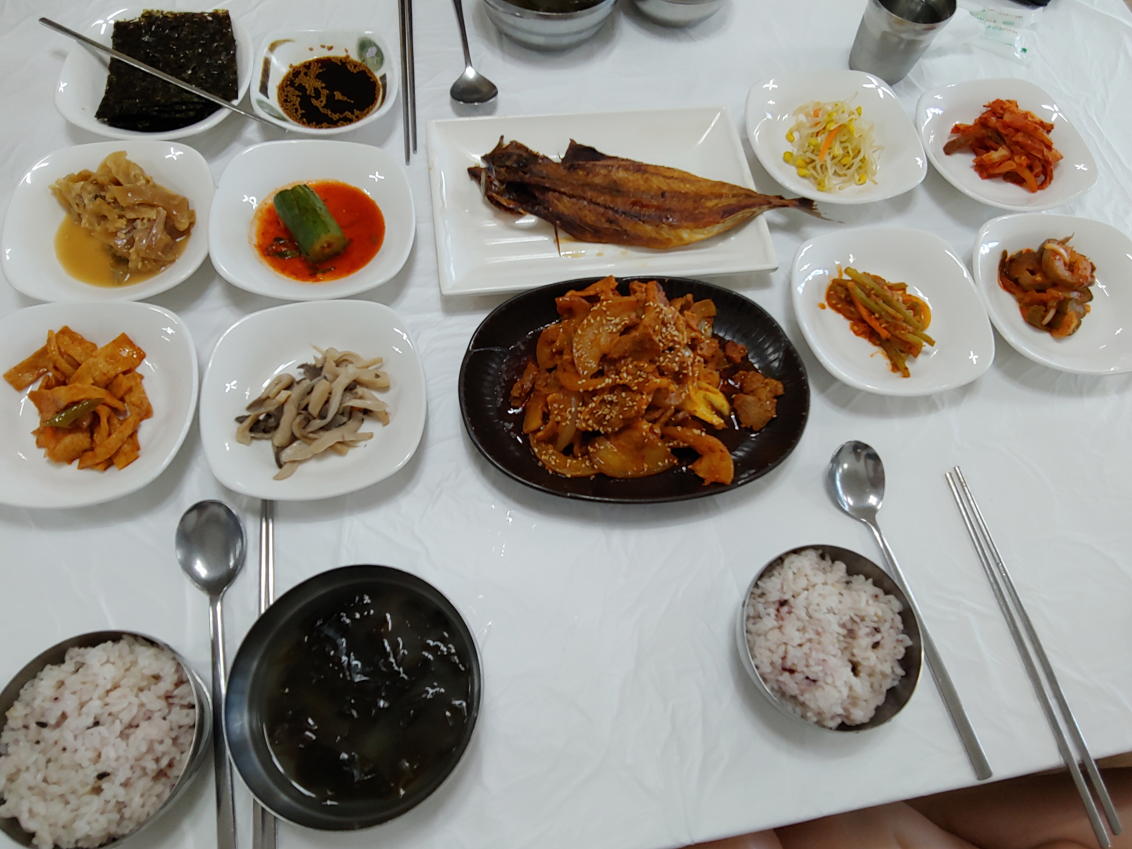 아침만 아니면 전복을 좋아하는 딸애를 위해 전복코스요리나 전복찜버터구이를 주문했을 것인데, 우리는 백반정식 2개와 전복해물둑배기 하나를 주문했네요.