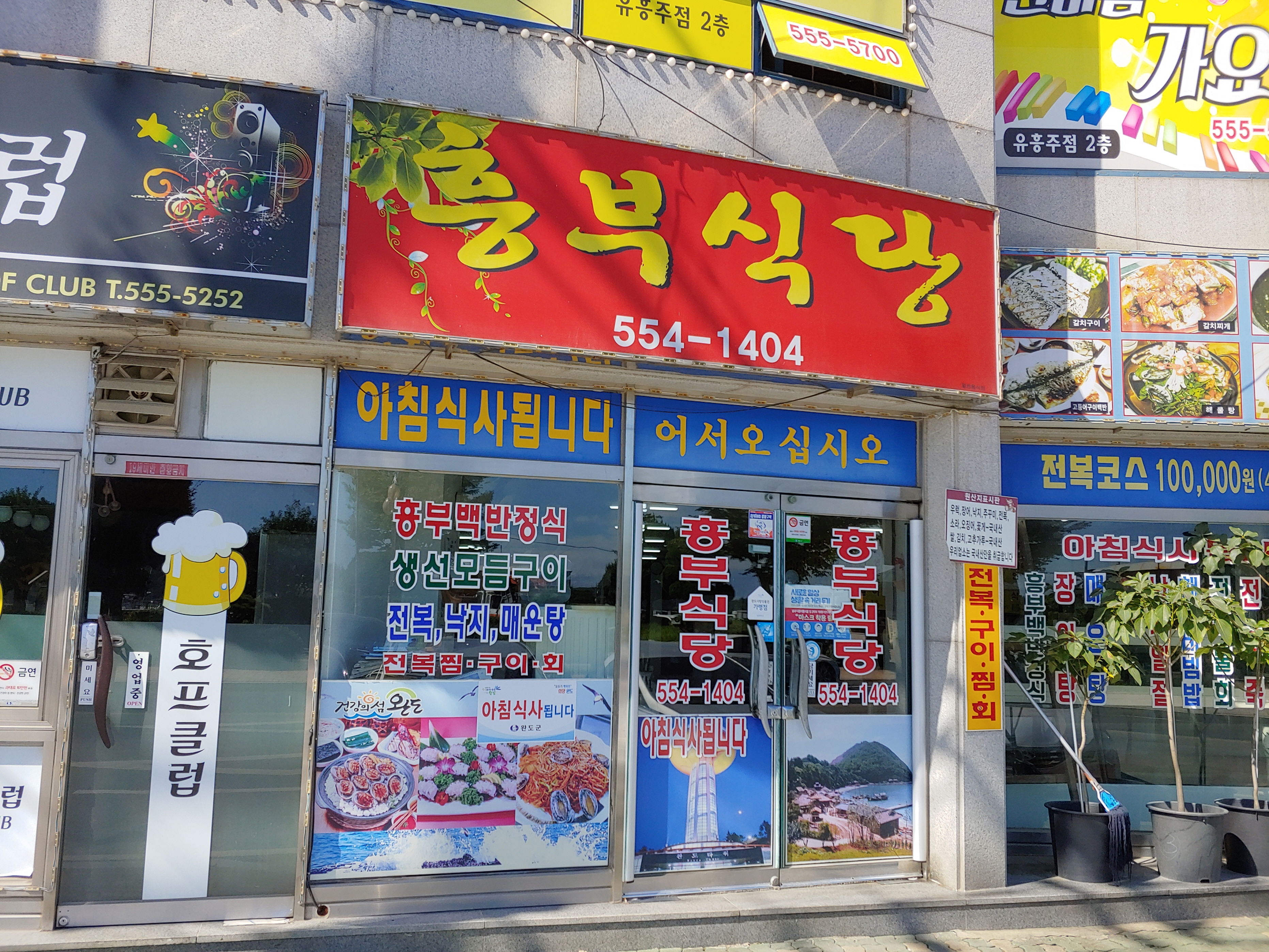 아침식사가 된다는 문구가 크게 적혀있고, 흥부백반정식, 전복 코스요리로 많이들 이용하는 식당인가 봅니다.