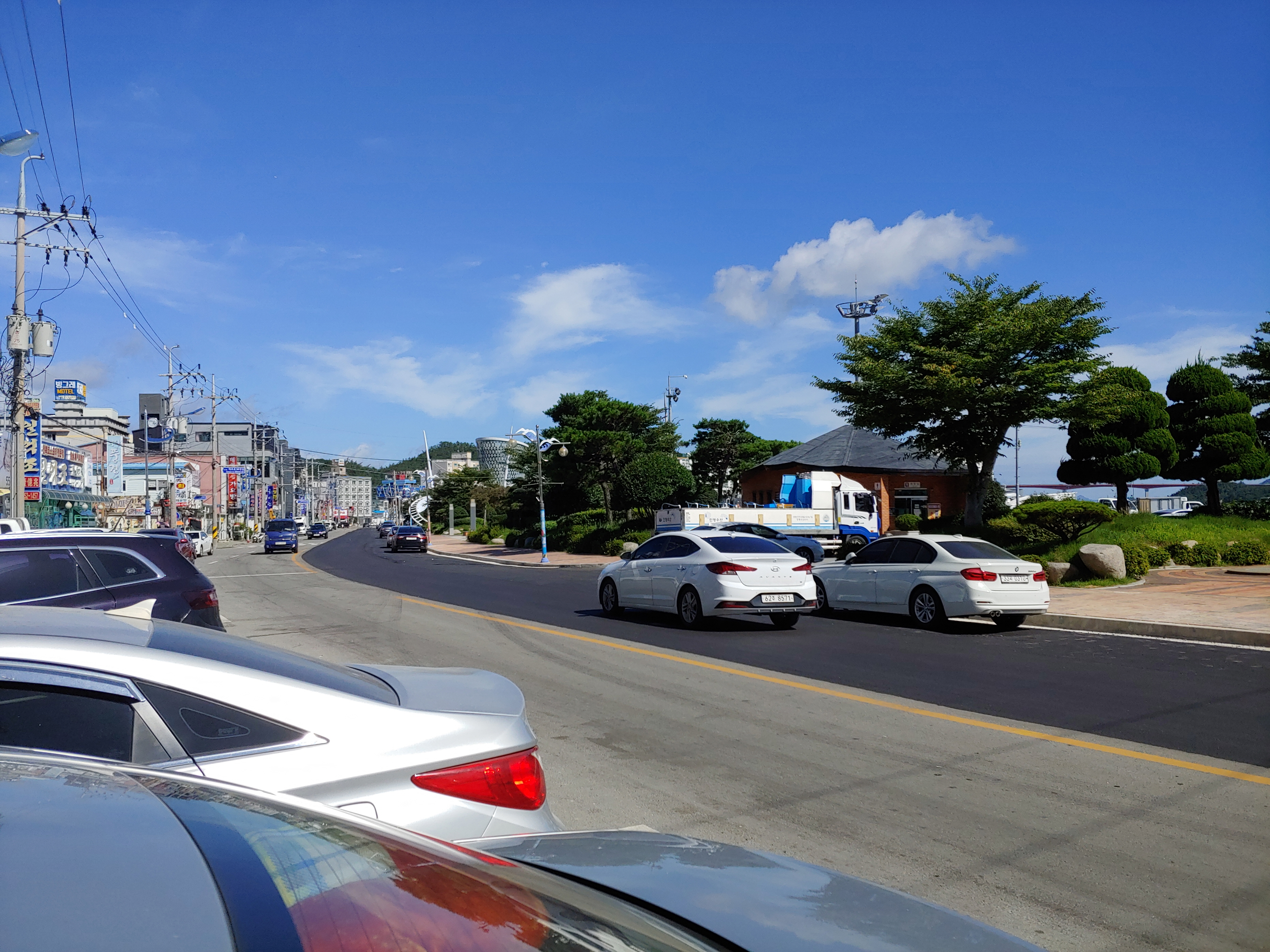 흥부식당이 있는 해변 공원로 모습이고, 저 앞에 해조류 센터가 보입니다.