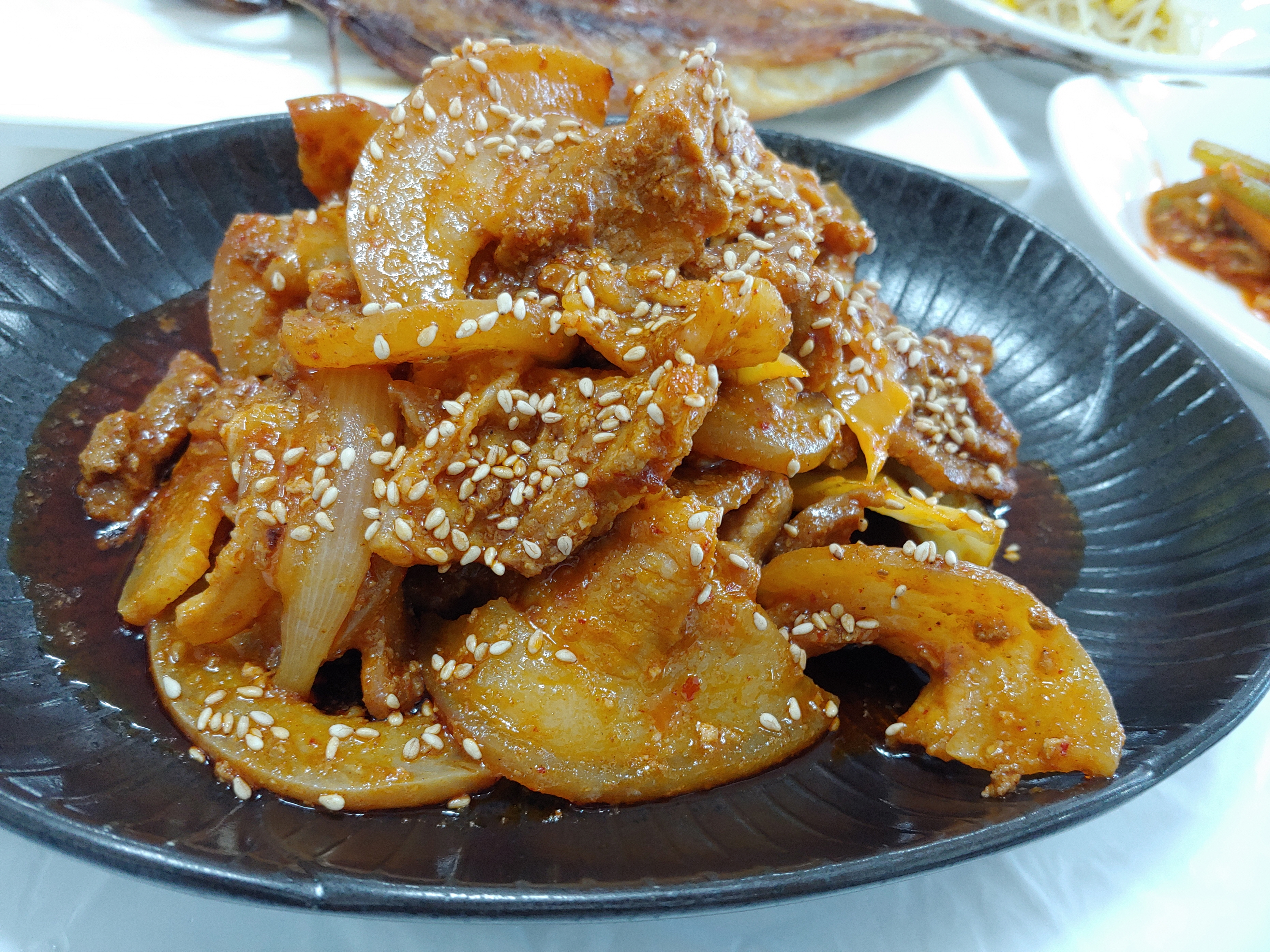 양념이 먹음직스러워 보이는 제육볶음입니다.