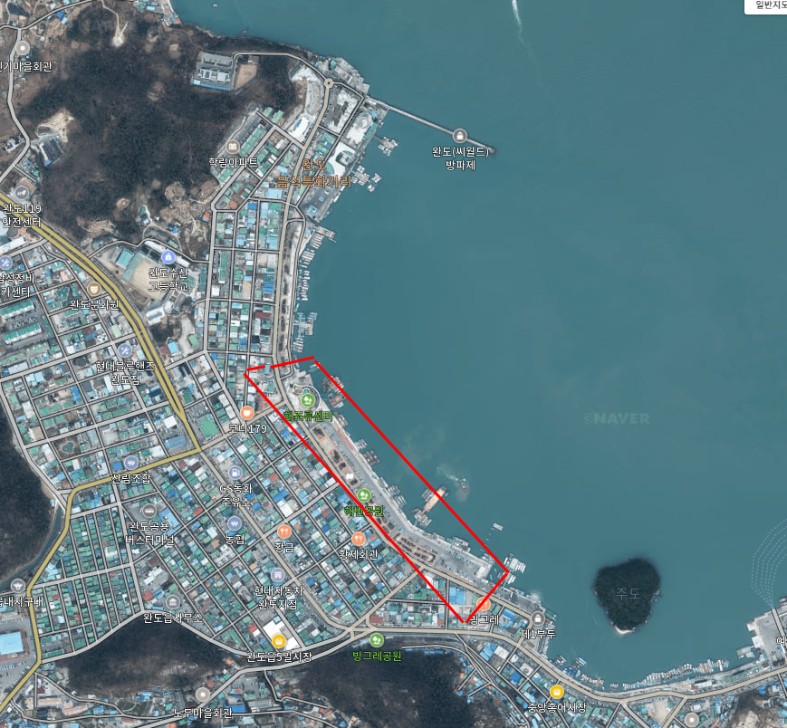 완도항 물양장 개축공사로 조성된 부지를 친수공간으로 2008년 조성이 된 곳이죠.