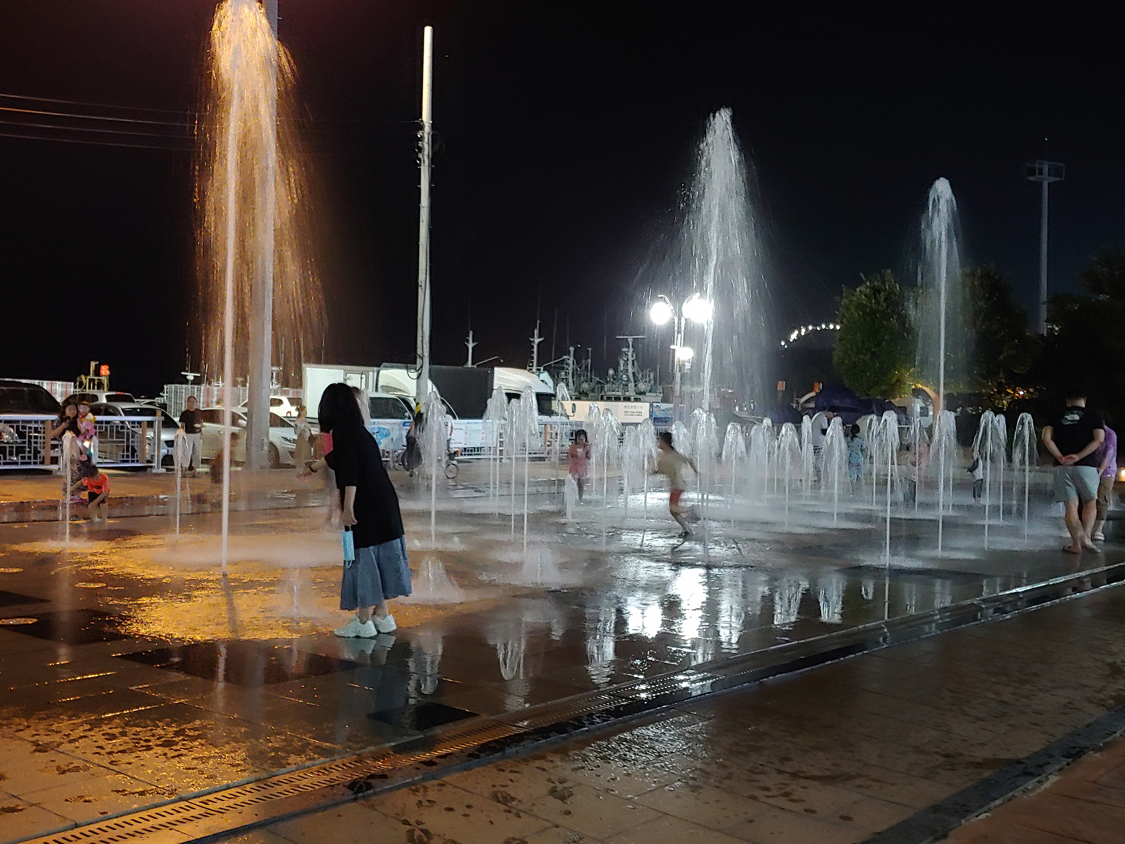 여름밤 바닥분수는 아이들의 놀이터가 되어 있습니다.