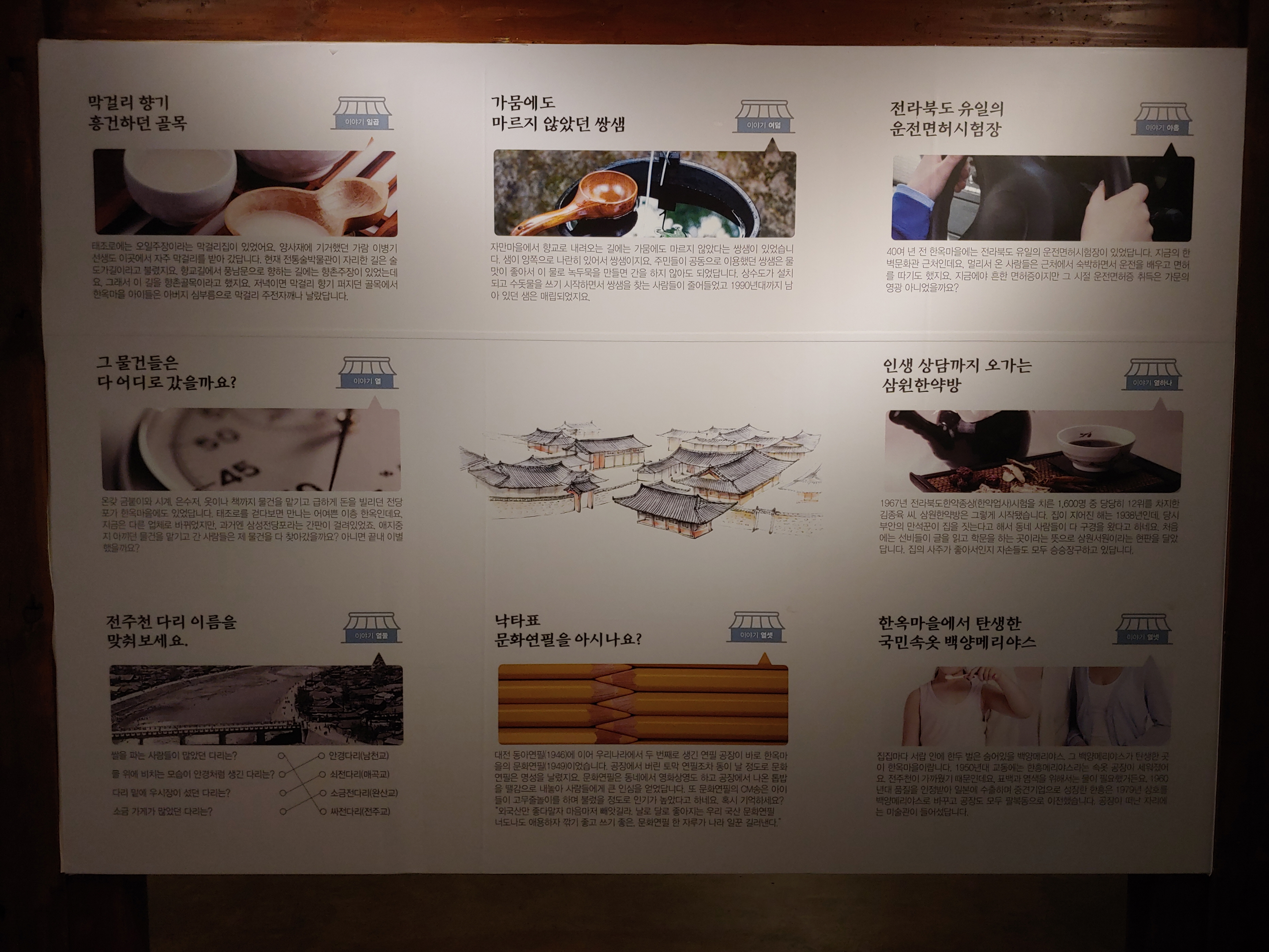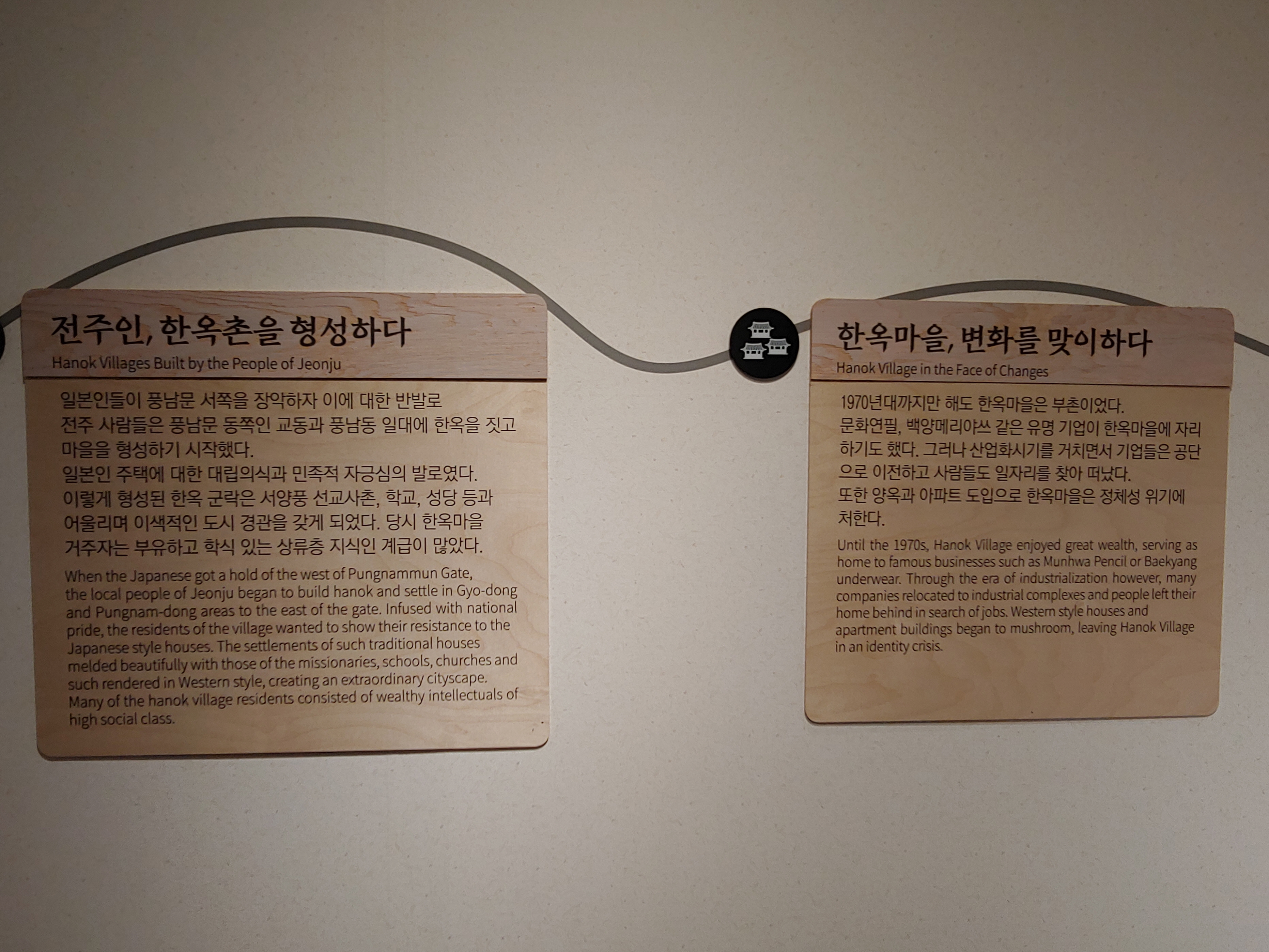 1970년대 까지만 해도 문화연필, 백양 메리야스 같은 유명기업이 한옥마을에 자리하는 등 전주한옥마을은 부촌이었지만, 산업화 시기를 거치면서 공장이 떠나고 빈민가로 전락했다고 합니다.