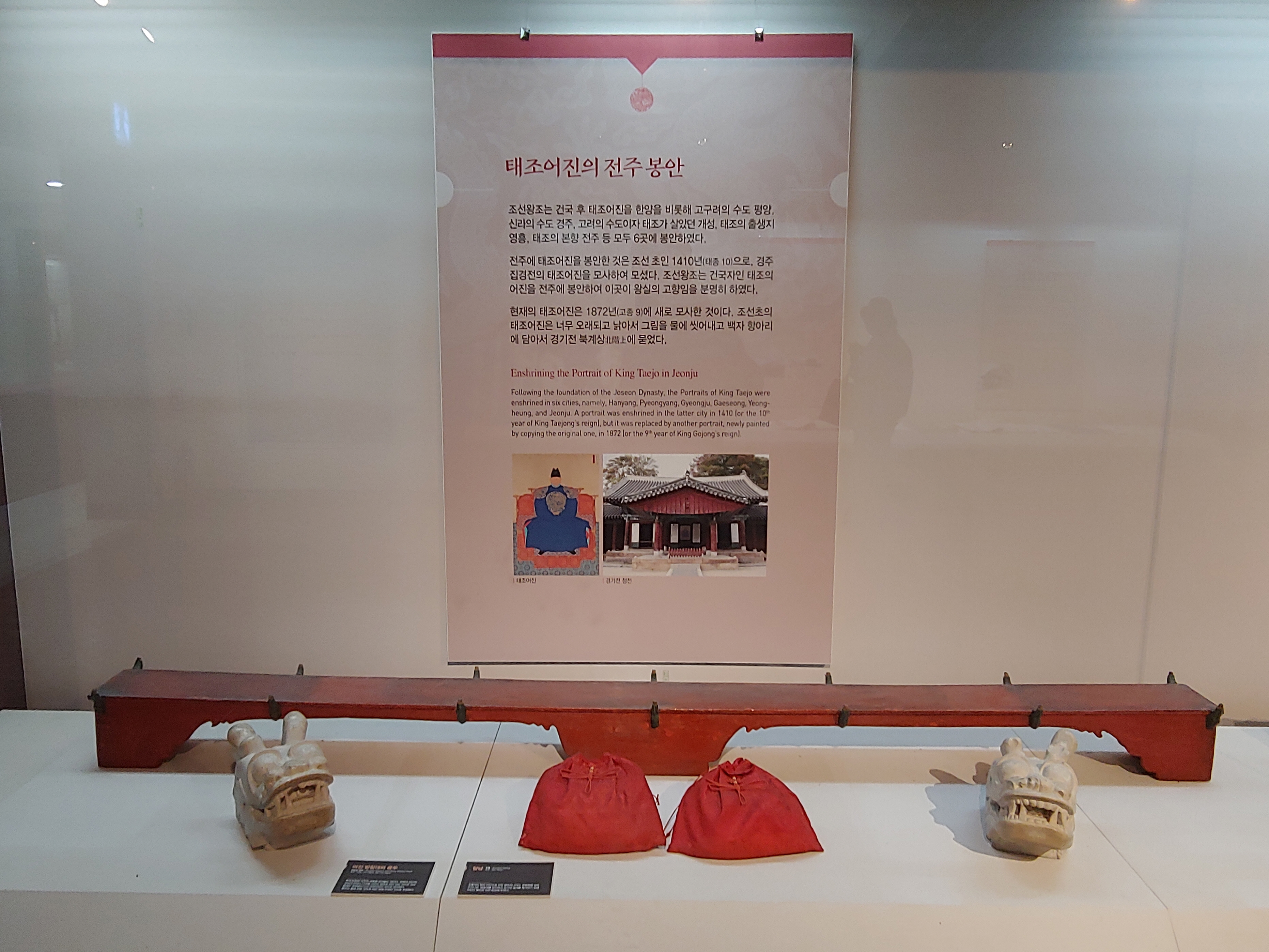 이곳에는 국보 317호인 태조어진을 비롯해 태조어진을 봉안할 때 사용된 가마유물 및 경기전 관련 유물들이 전시되어 있습니다.