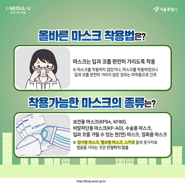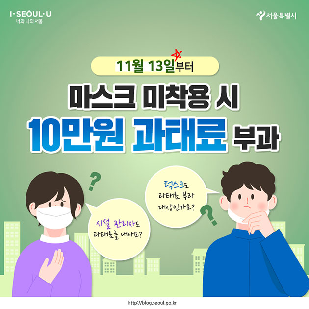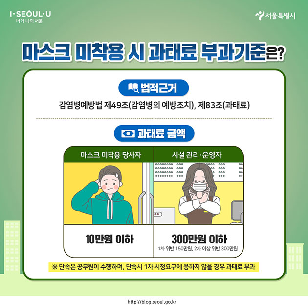 서울시 내 손안의 서울에서 마스크 착용법과 마스크 미착용 시 10만원의 과태료를 부과한다고 밝힌 기사를 정리했습니다.