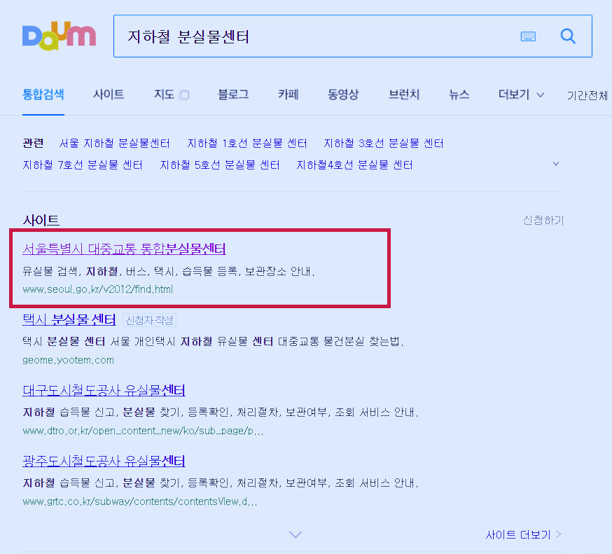 검색포털에서 지하철 분실물센터를 검색하면 '서울시 대중교통 통합분실물센터'가 바로 그것이죠.