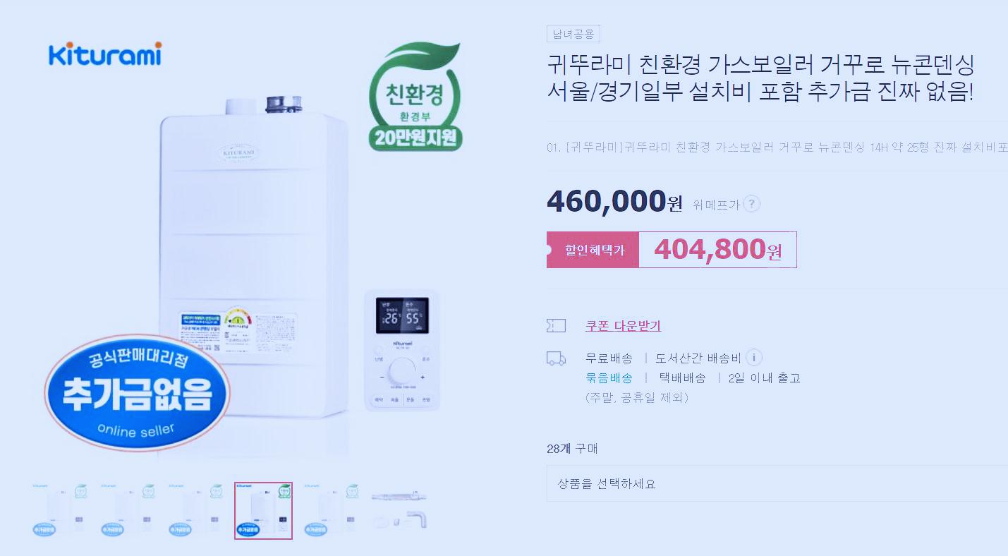 온라인 쇼핑몰에 나와있는 친환경 보일러인 귀뚜라미 가스보일러입니다.