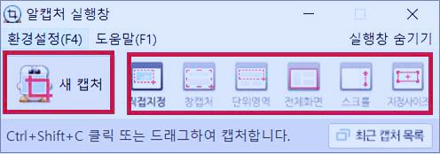 더 자세한 내용을 보고 싶으면 알캡처 도움말을 이용하면 됩니다.