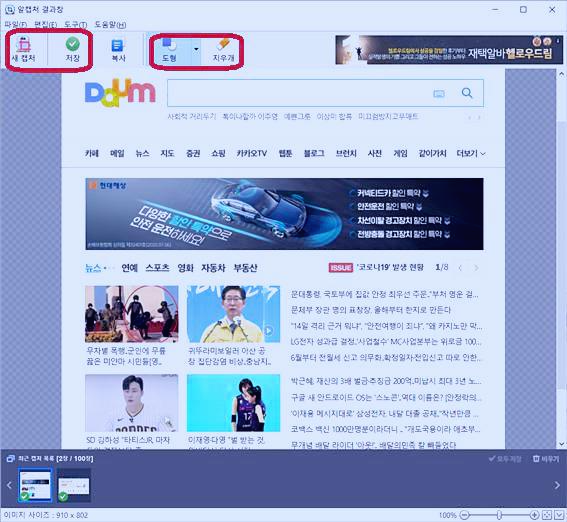 다음 홈페이지 일부를 드래그하여 캡처를 했습니다.