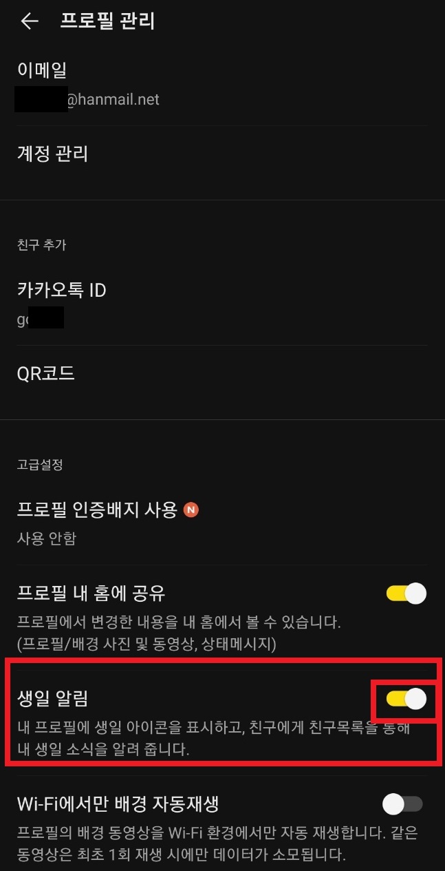생일 공개하기를 원하지 않는다면 카카오톡 알림끄기로 설정해서 사용하시기 바랍니다.