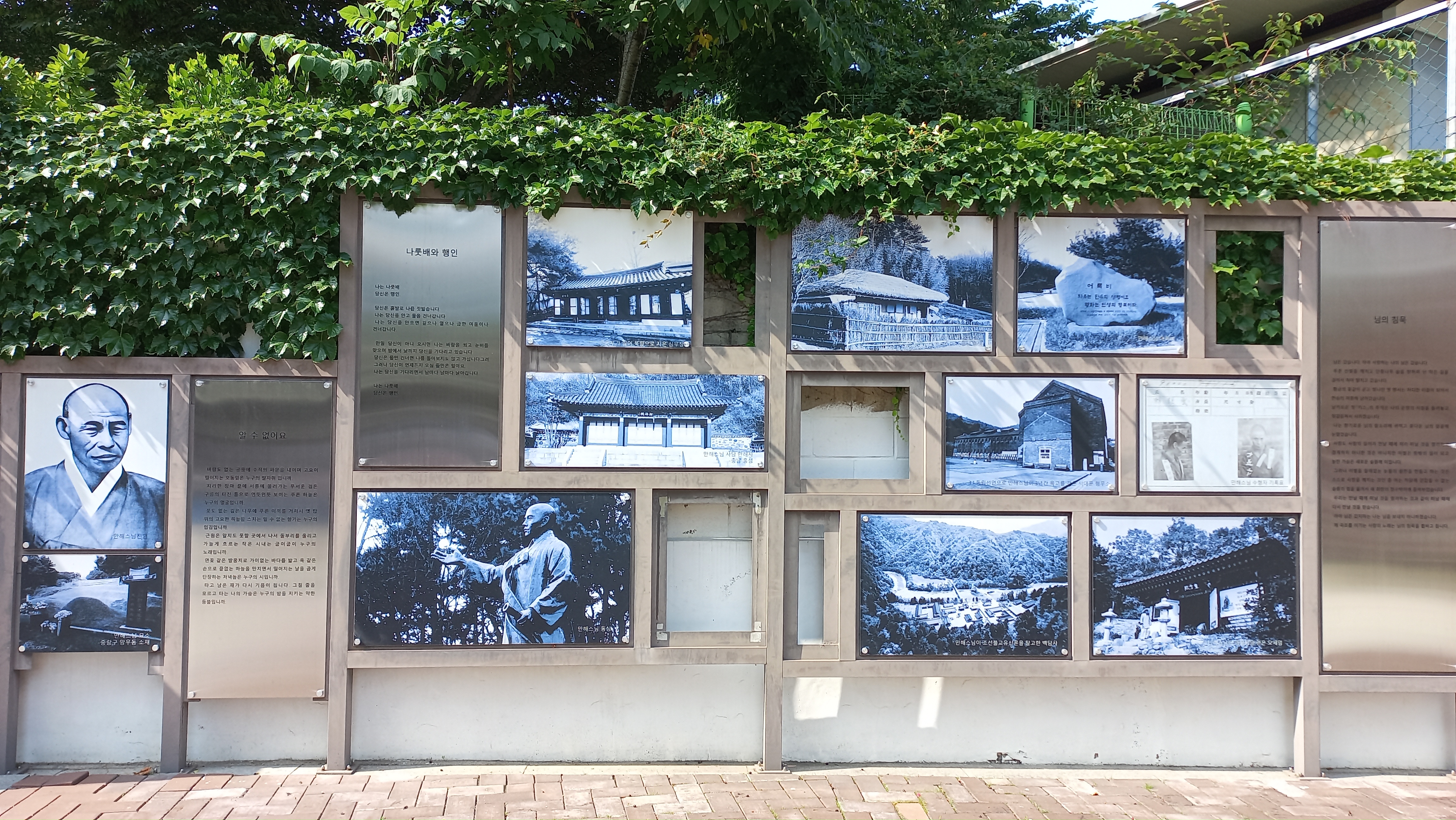 선학원, 한국근대불교문회기념관 담벼락에는 만해 한용운의 시와 사진들이 전시되어 있습니다.