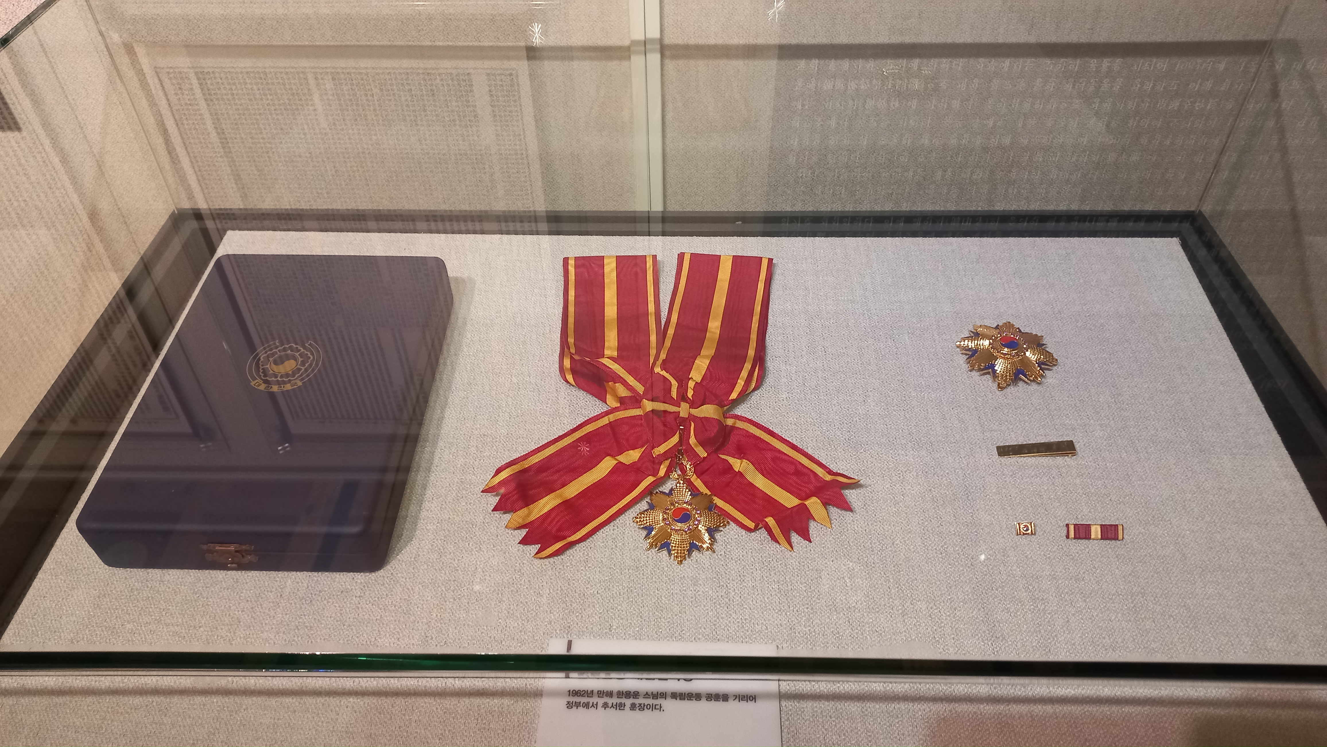1962년 만해 한용운 스님의 독립운동 공훈을 기려 정부에서 추서한 훈장 모습