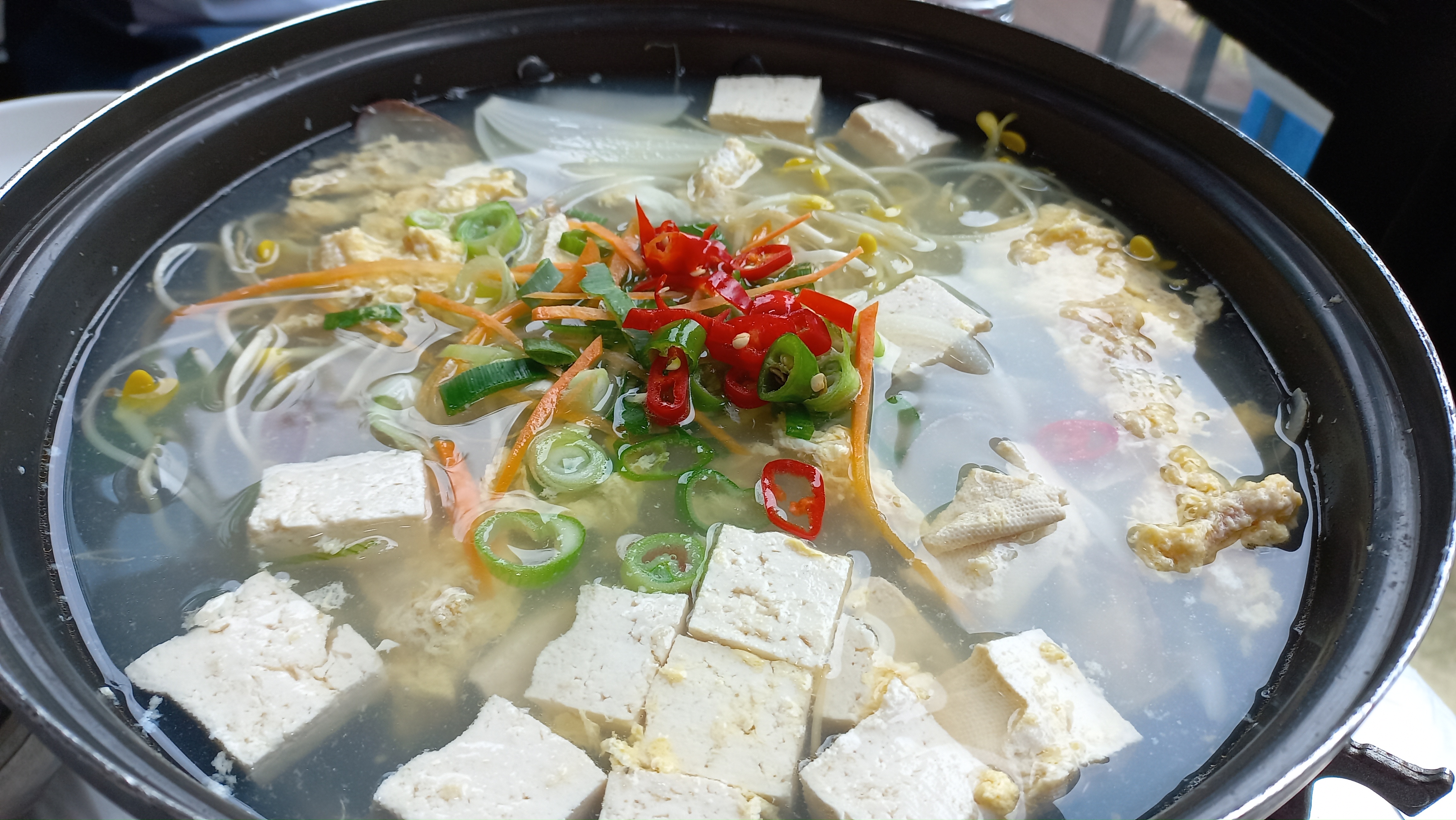 콩나물과 바지락, 복어가 메인 재료이고, 두부와 고추로 맑은 국물에 얼큰한 맛이 일품이었습니다.