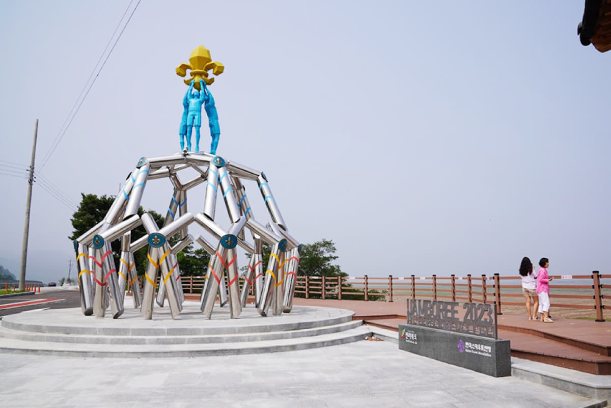 잼버리공원에 세워진 조형물은 스카우트 항건을 서로 엮어 스카우트 대원들간의 끈끈한 형제애와 결속을 나타내며 청소년들이 세계연맹의 휘장을 높이 들며 함께 꿈꿔 나가는 모습을 형상화했습니다.