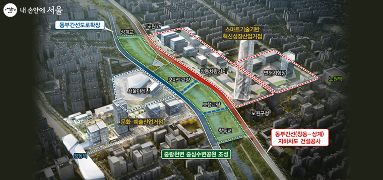 1) 동부간선도로(창동~상계구간) 지하차도 및 상부 중랑천 수변문화공간 조성