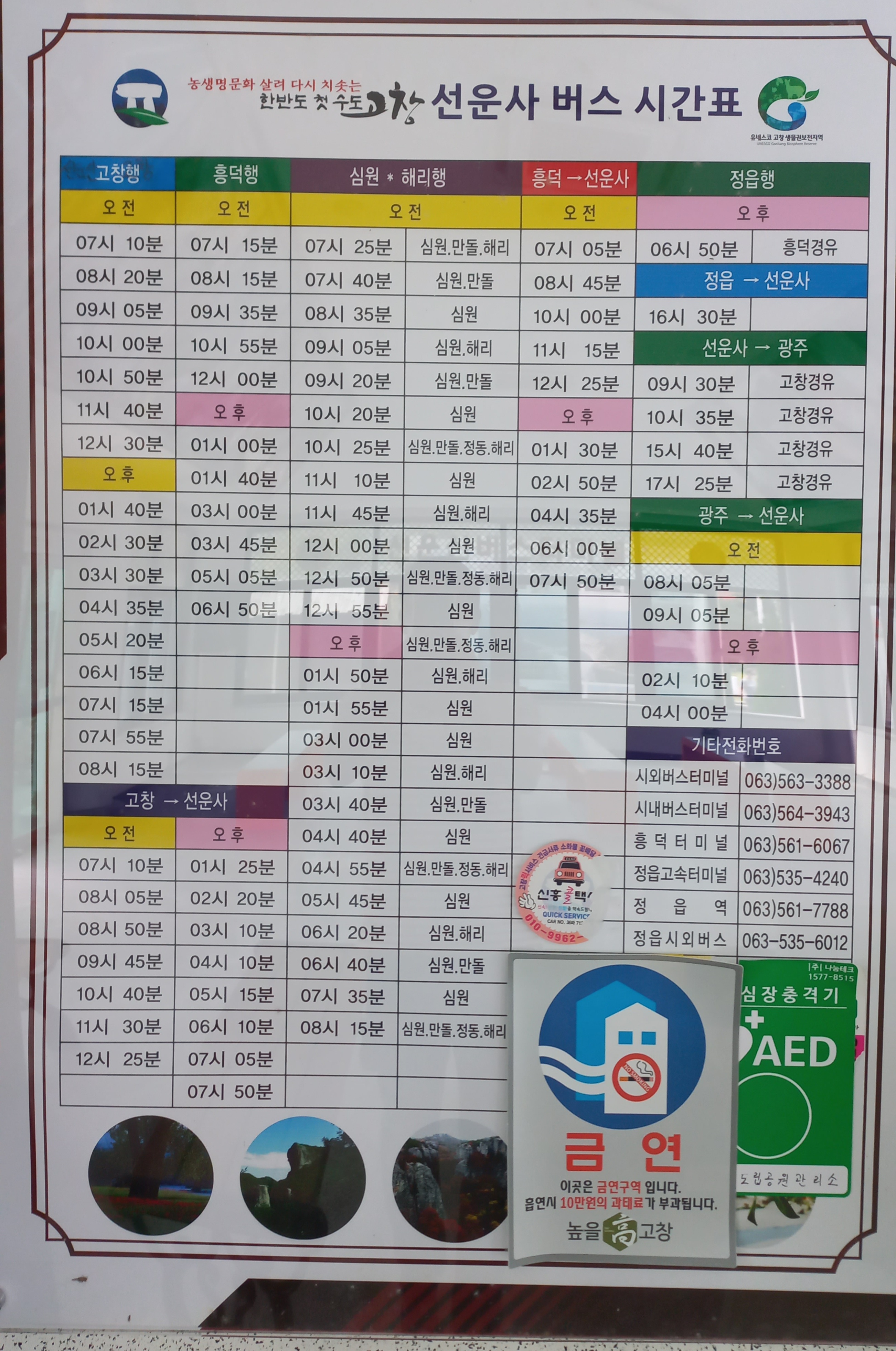 선운산도립공원 주차장 앞에 있는 선운산 버스정류장 시간표를 잠깐 담았습니다.