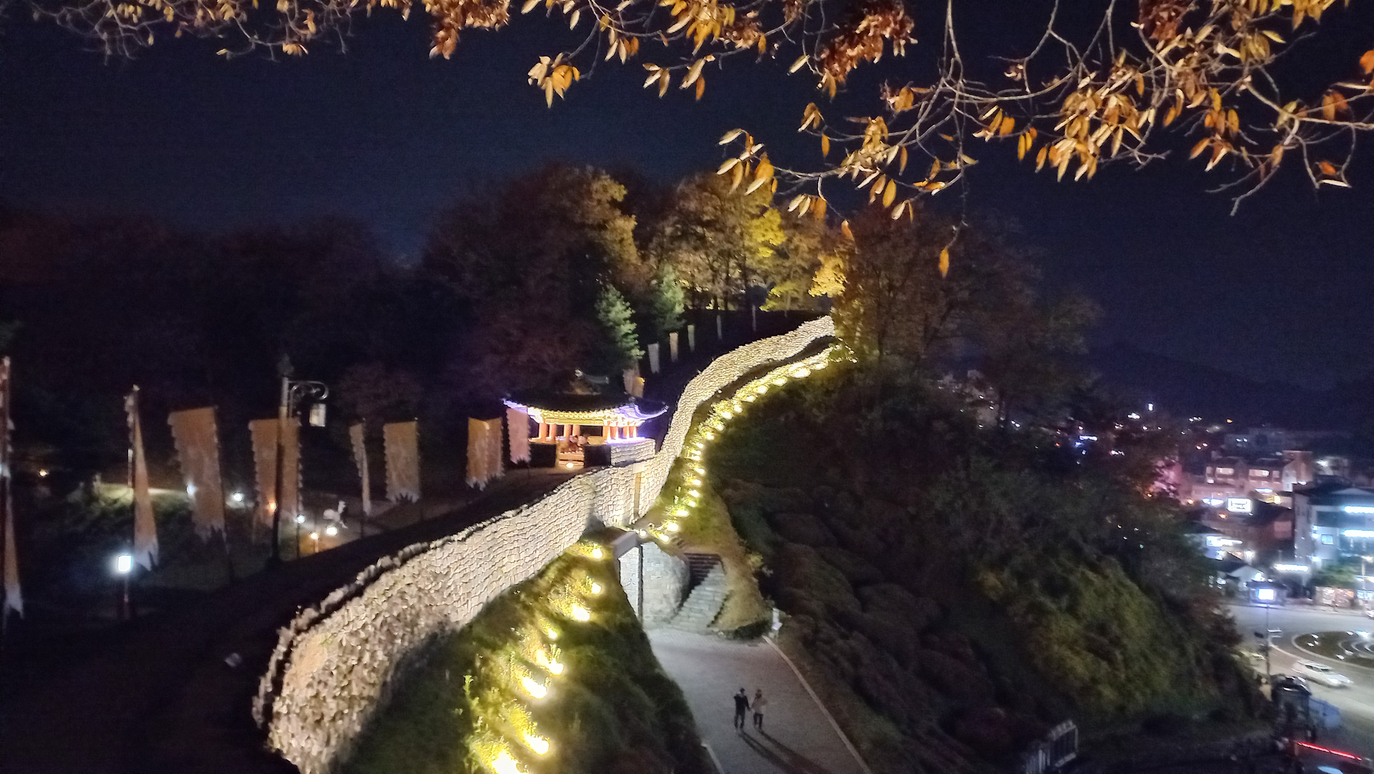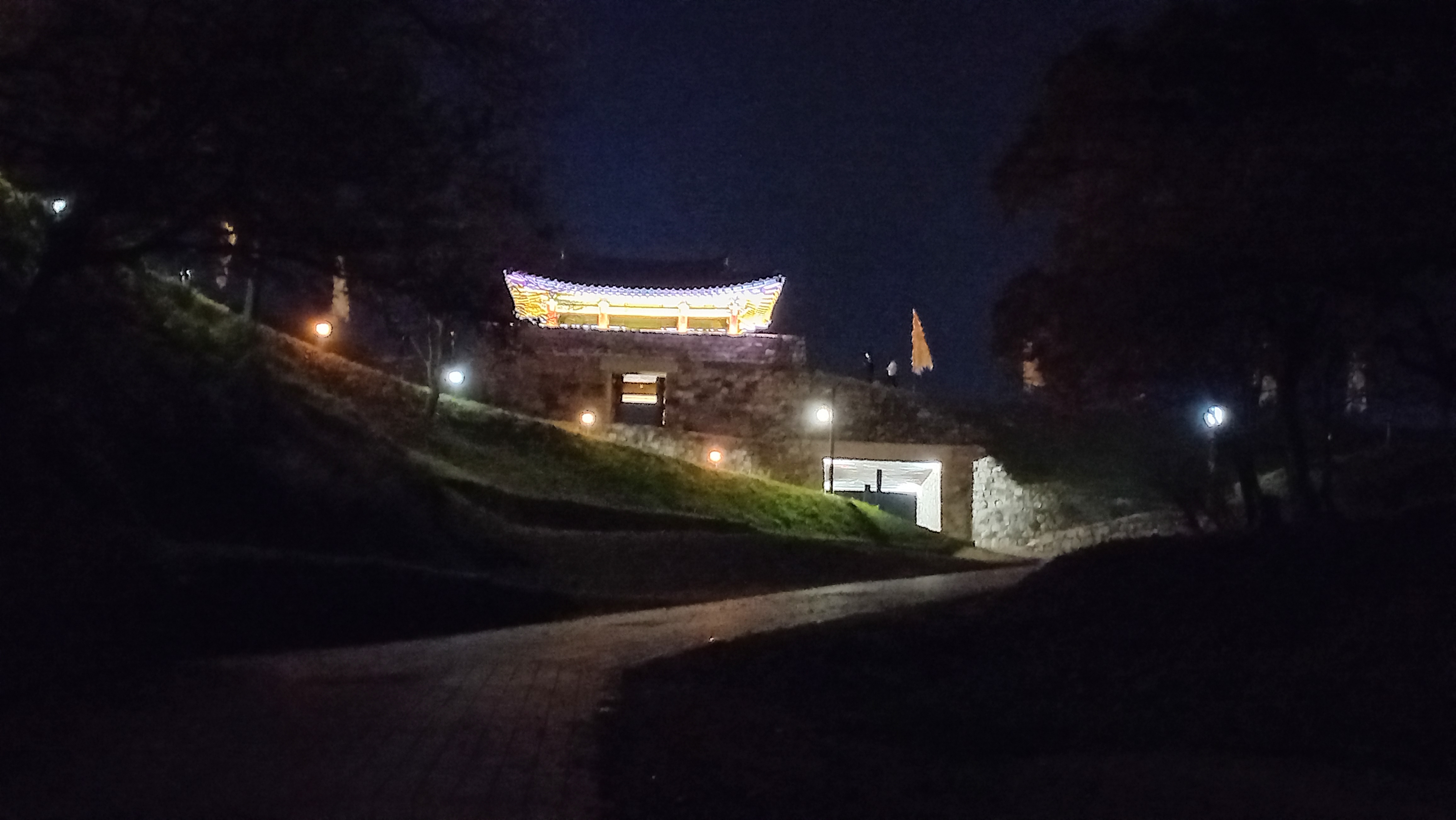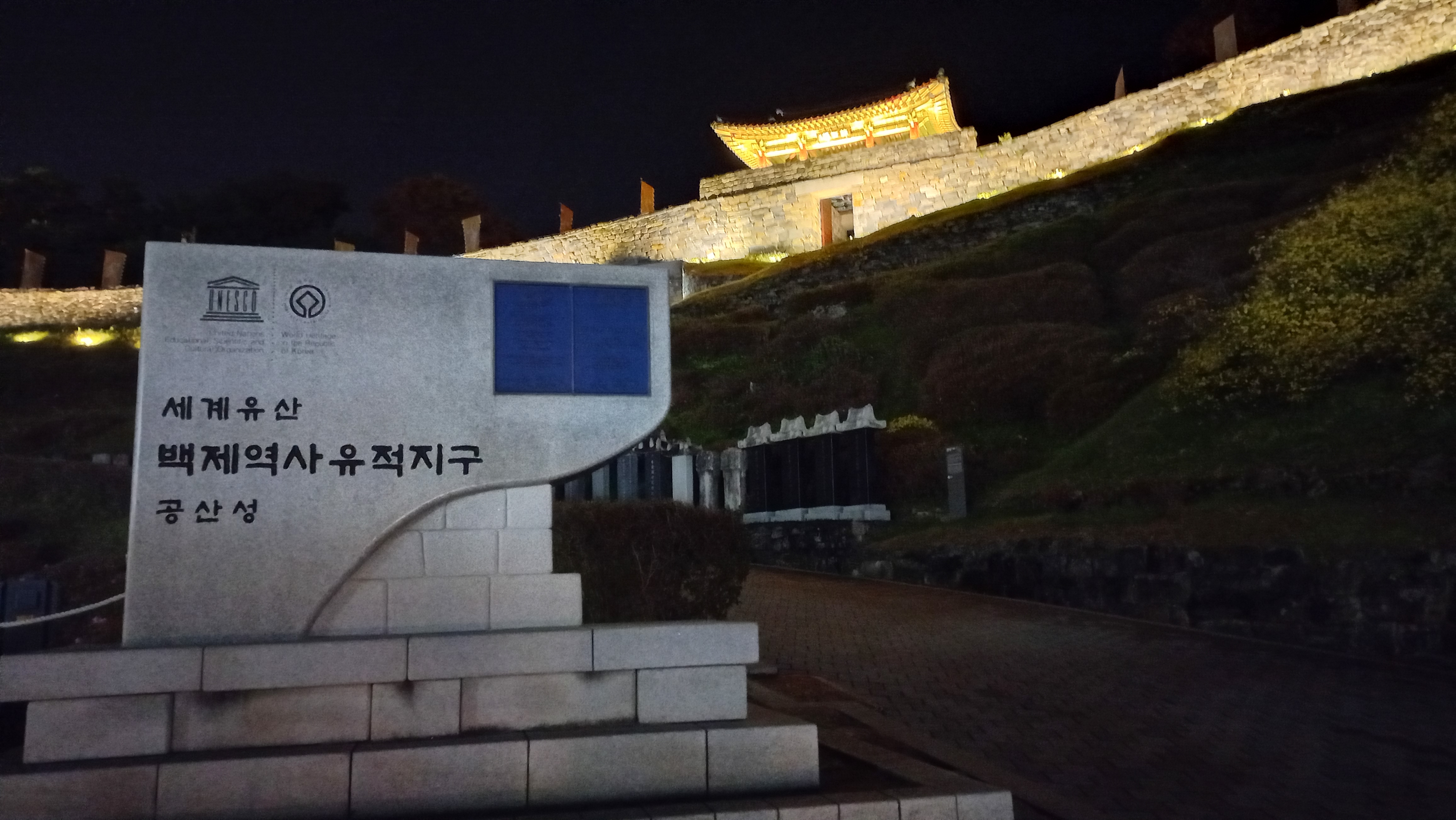 성곽을 따라 공산성 둘레를 걸을 수 있게 되어 있는데, 야간에도 조명이 들어와 걸을 수 있더군요.