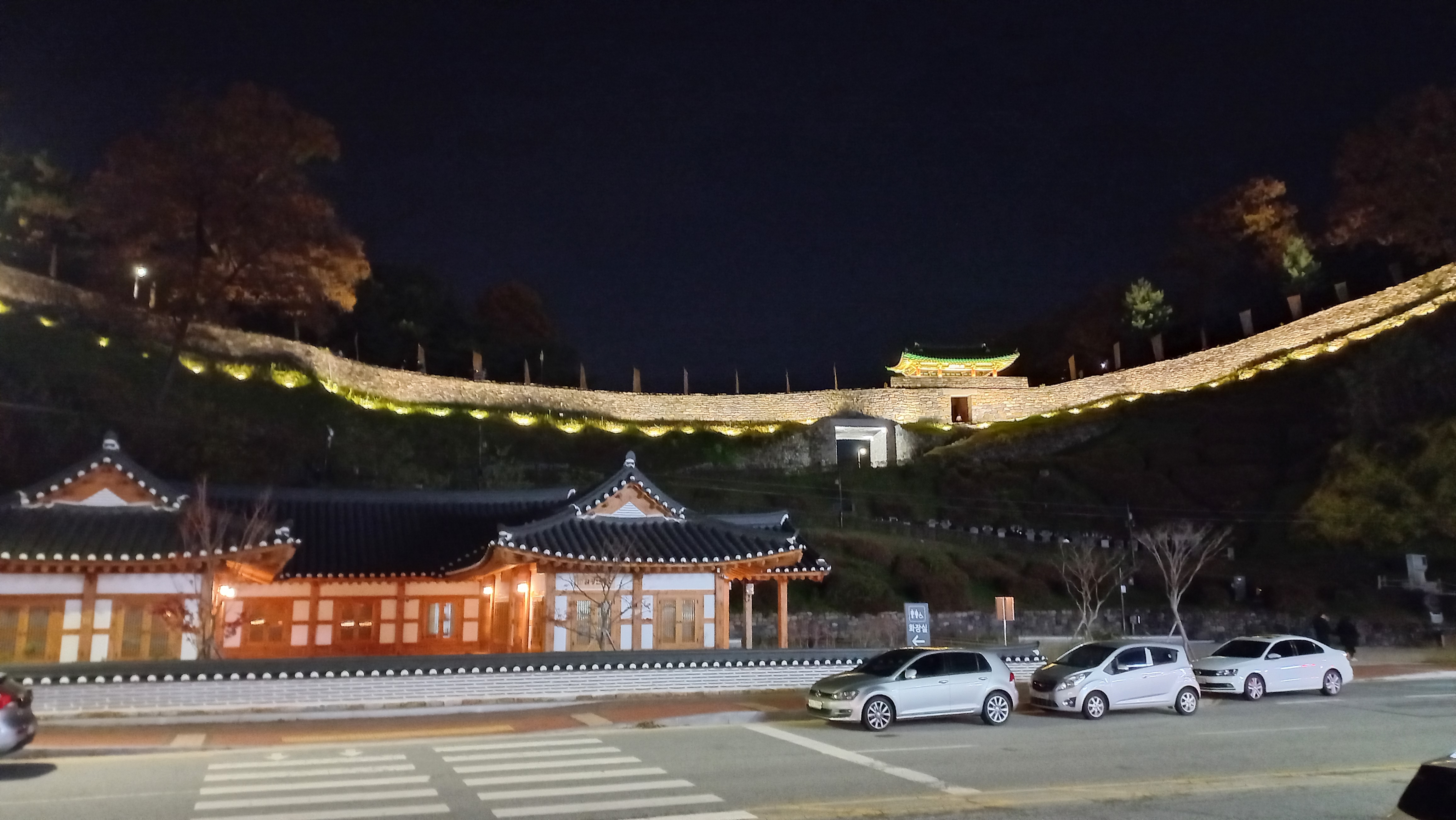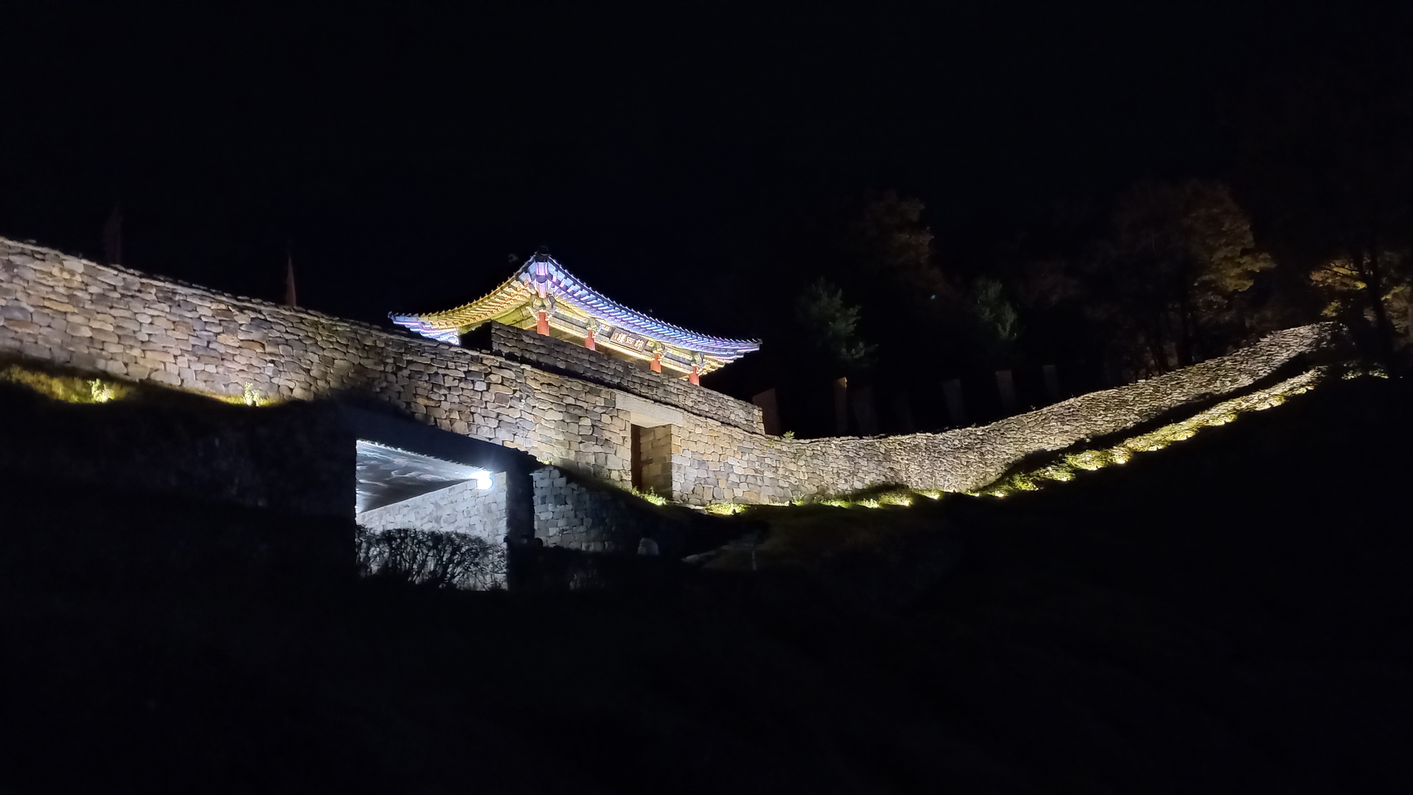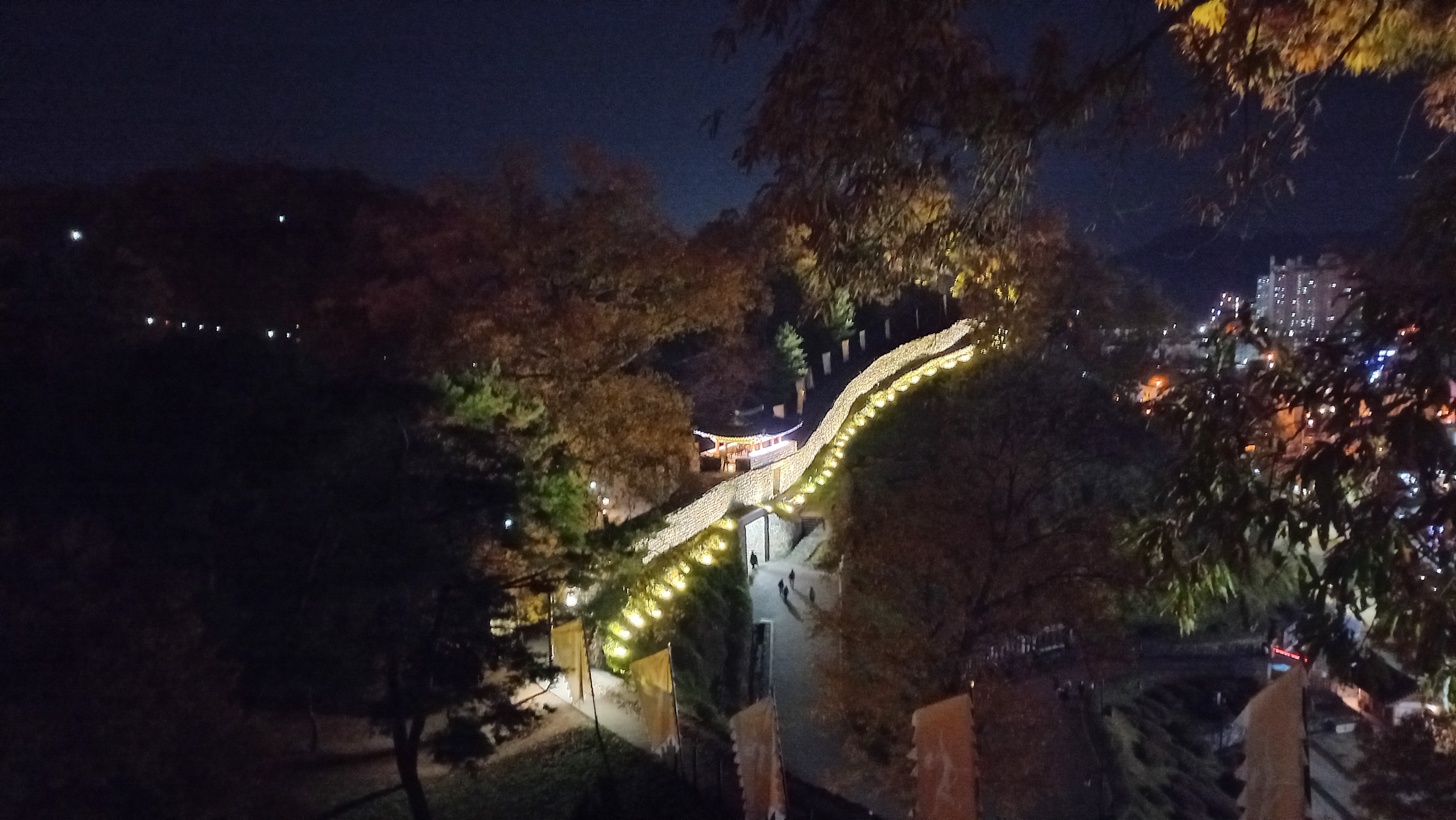 성곽을 따라 공산성 둘레를 걸을 수 있게 되어 있는데, 야간에도 조명이 들어와 걸을 수 있더군요.