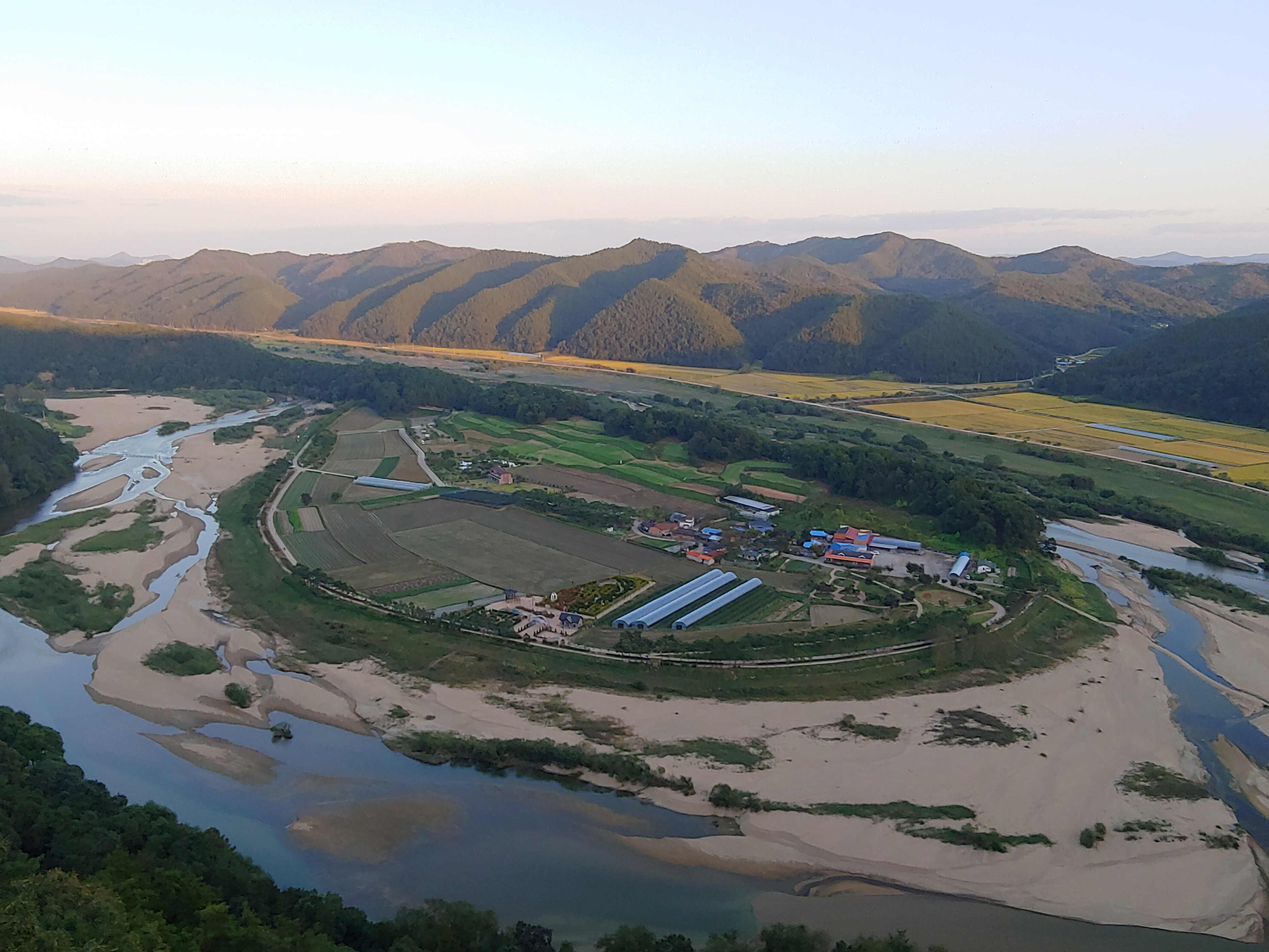 낙동강 지류인 내성천이 휘감아 도는 육지 속 섬마을로 마을을 350도 휘감아 돌아나가서 마을 주위에 고운 모래밭이 펼쳐지며 산과 강이 태극 모양의 조화를 이루는 곳이죠.