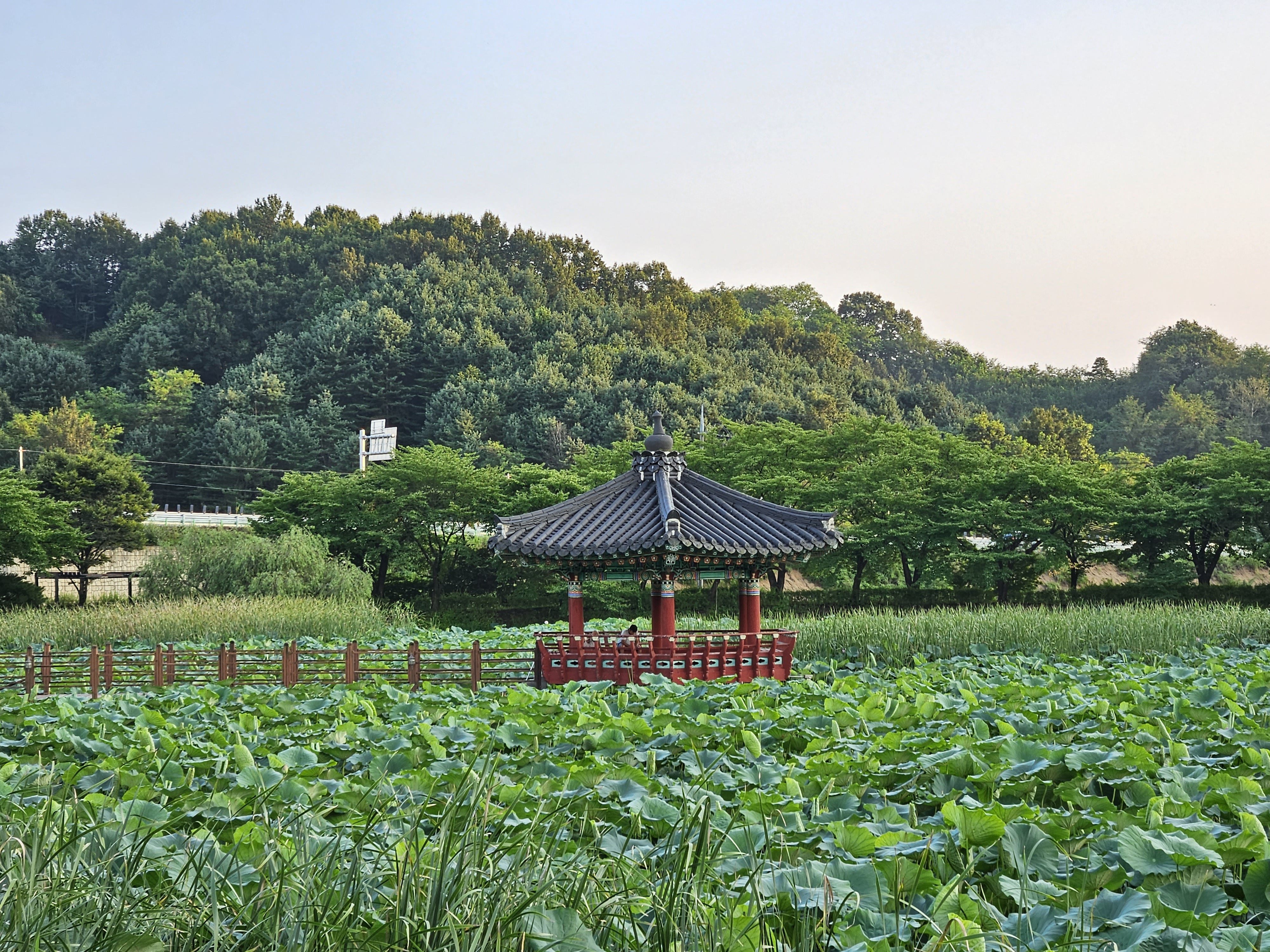 산택연꽃공원은 예천시 용궁면 산택리에 있는 산택저수지에 홍련이라는 연꽃을 식재해 매년 7~8월이면 연꽃이 피어 눈길을 끄는 곳인데요.